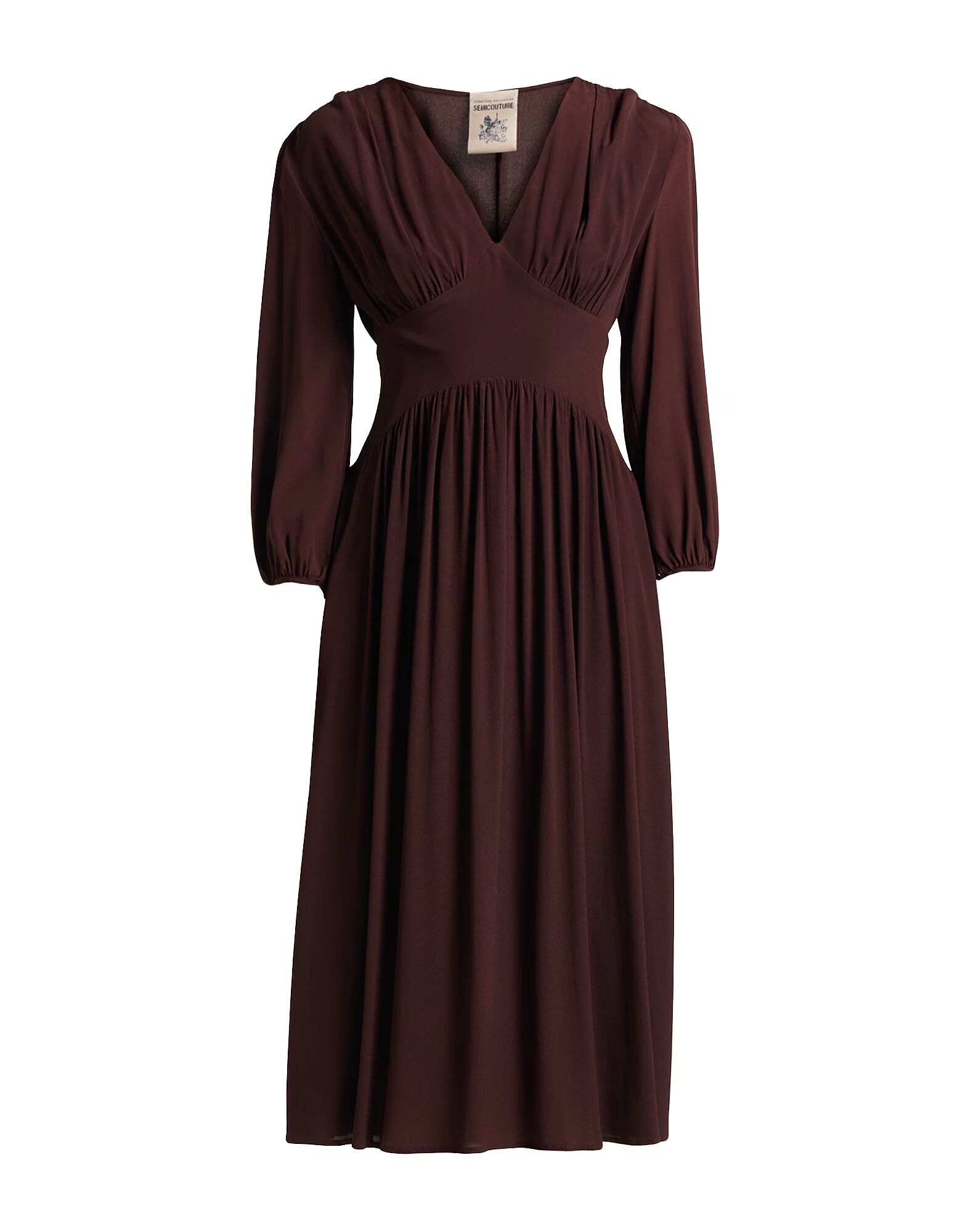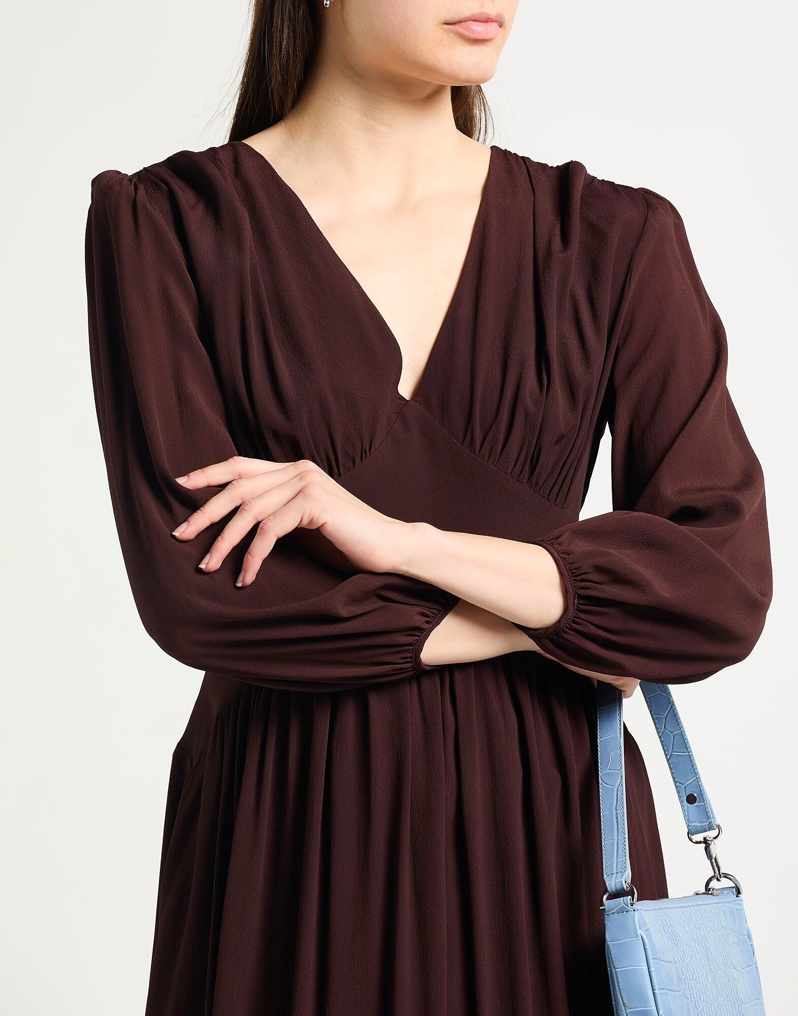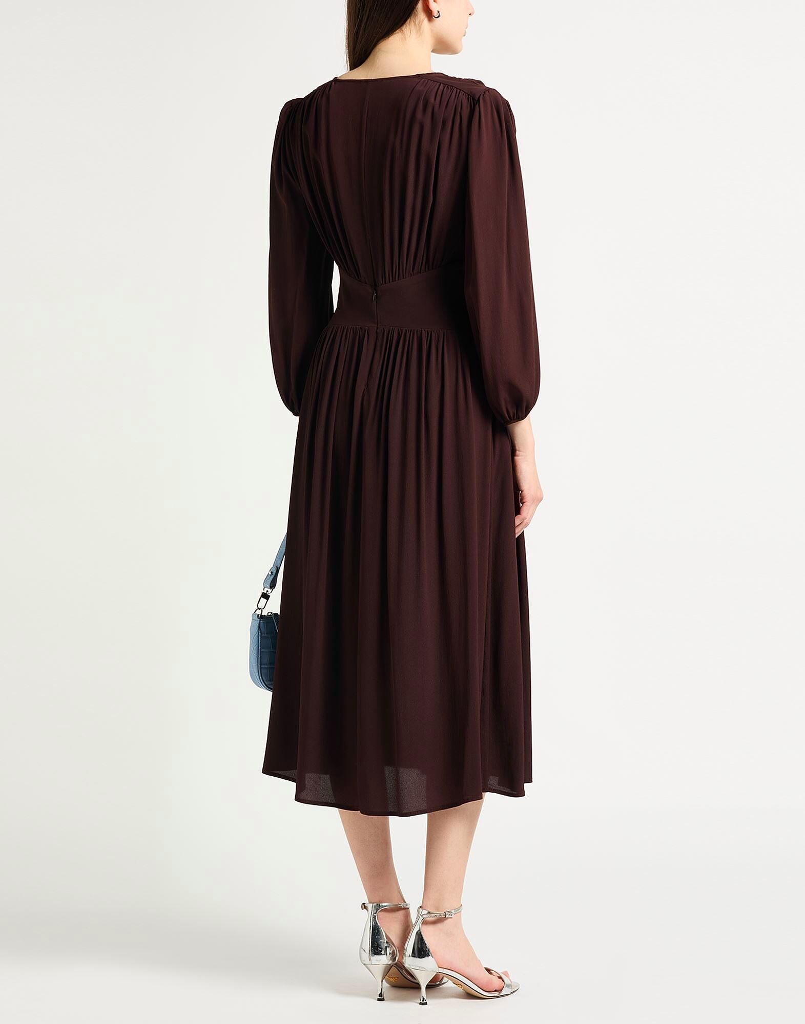 Платье-клеш, креп, однотонное, со сборками, V-образный вырез, длинные рукава, без подкладки, ручная стирка или химчистка, не отбеливать, не сушить в сушильной машине