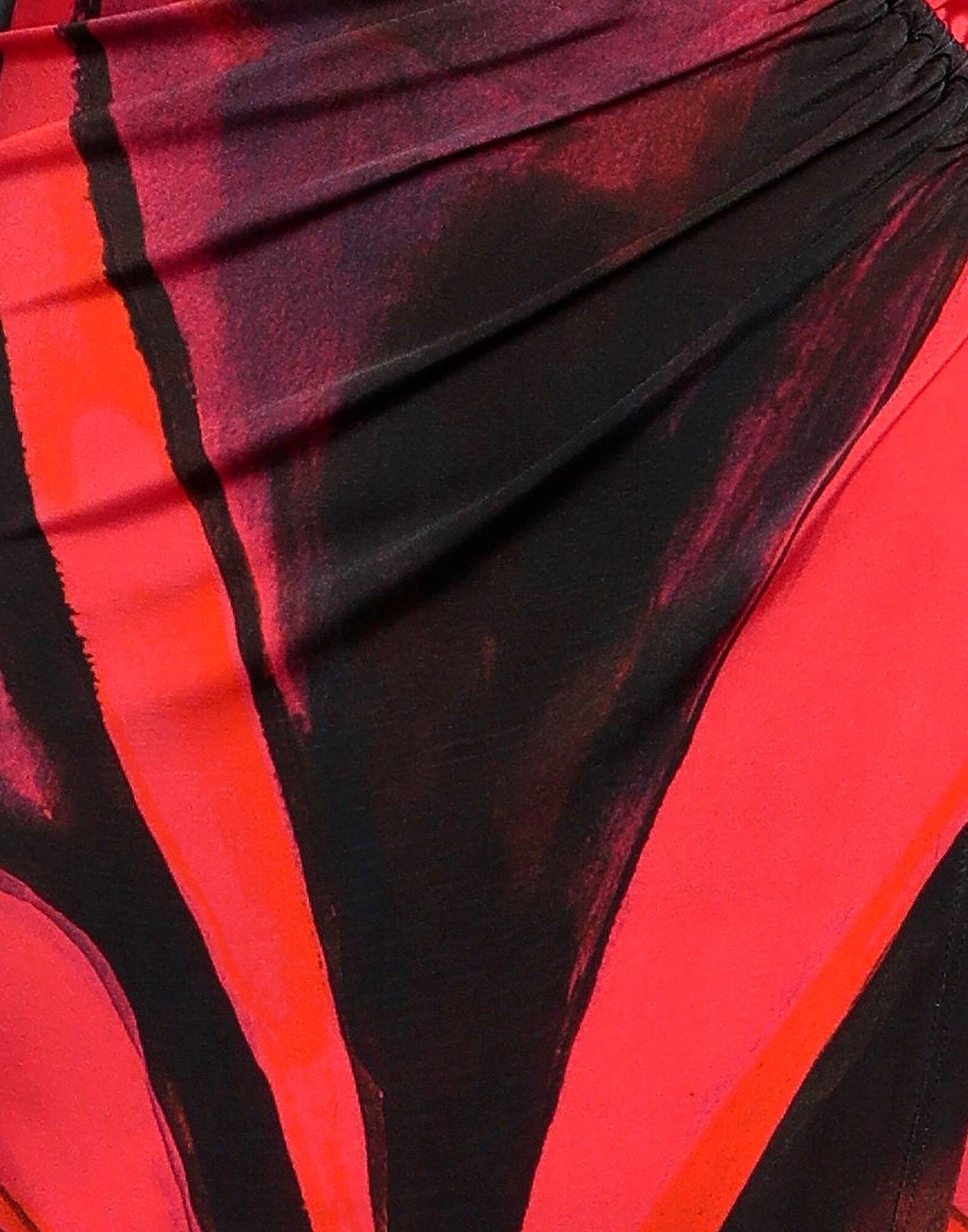 Платье-футляр, синтетический трикотаж, эластичная ткань, многоцветное, со сборками, с запахом, глубокий вырез, длинные рукава, без подкладки, без карманов, химчистка