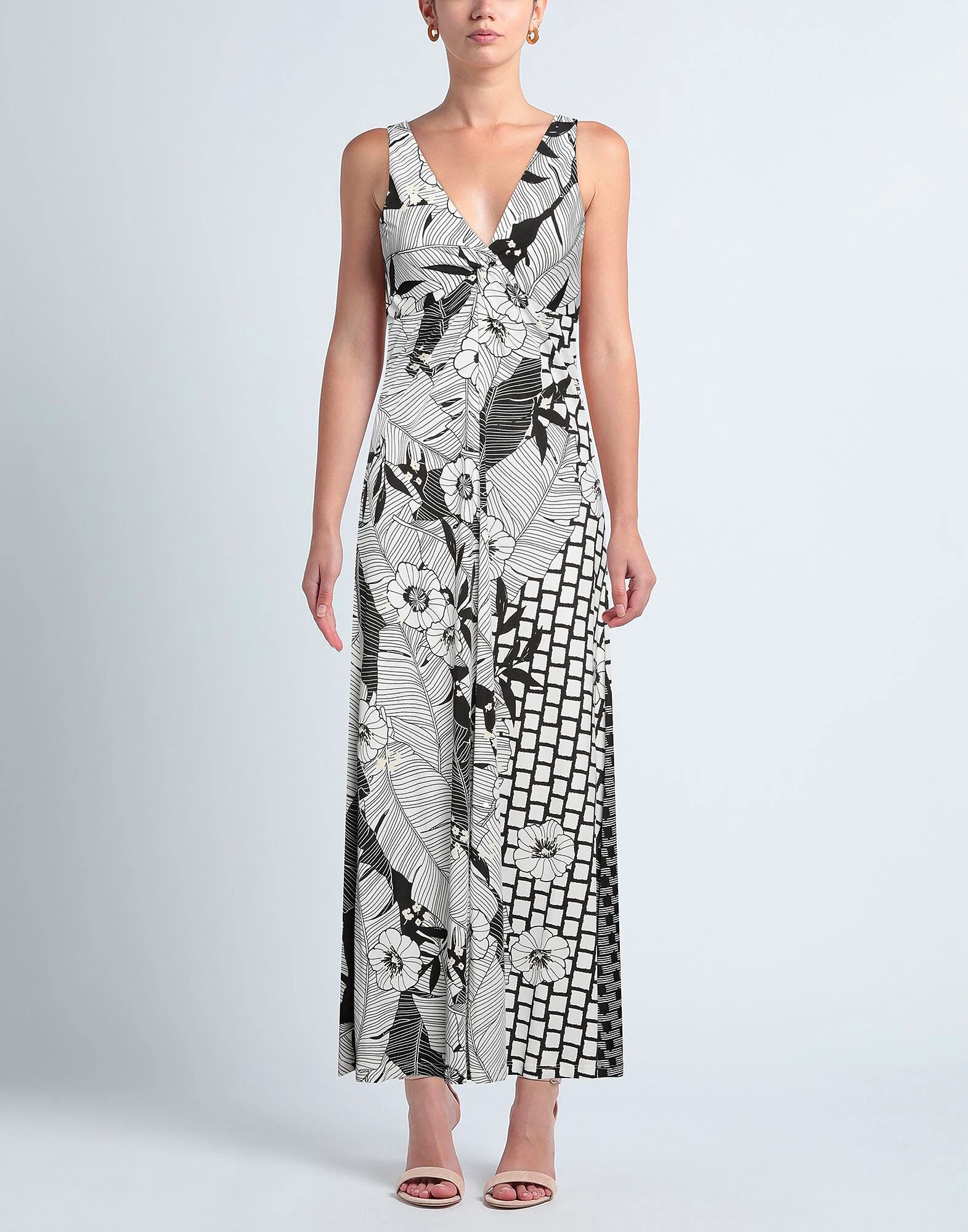 Трикотажное полотно, без аппликаций, с цветочным принтом, глубокий вырез, без рукавов, частично на подкладке, без карманов, платье