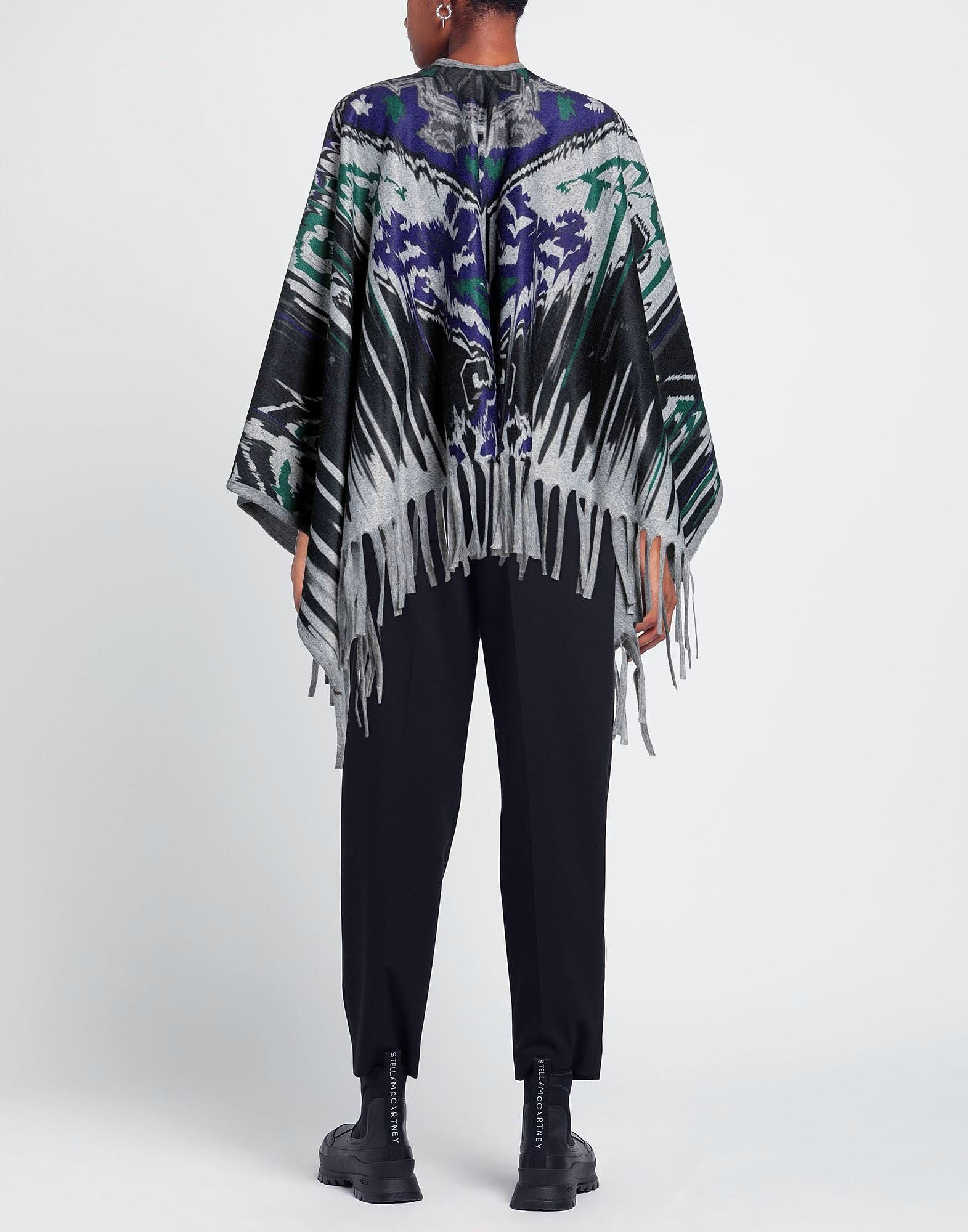 Фетр, бахрома, геометрический принт, глубокий вырез, однобортный, без рукавов, без подкладки, накидка