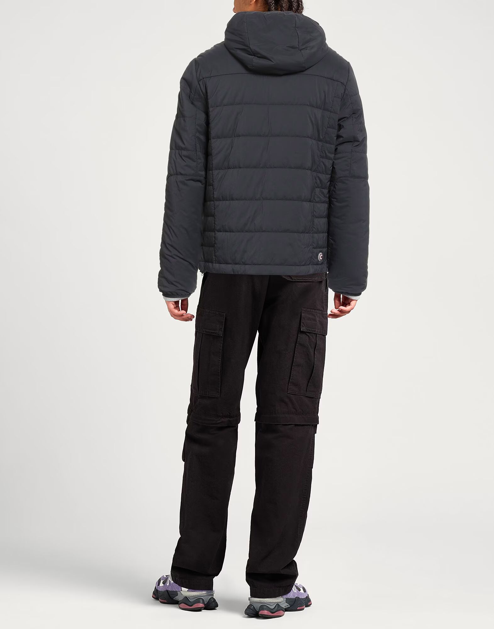 Стеганая куртка, верхняя ткань, однотонная, с логотипом бренда, с капюшоном, однобортная, длинные рукава, синтетический наполнитель, застежка на молнию, карманы на молнии, низ на шнурке, машинная стирка, не отбеливать, сушить в сушилке, не гладить