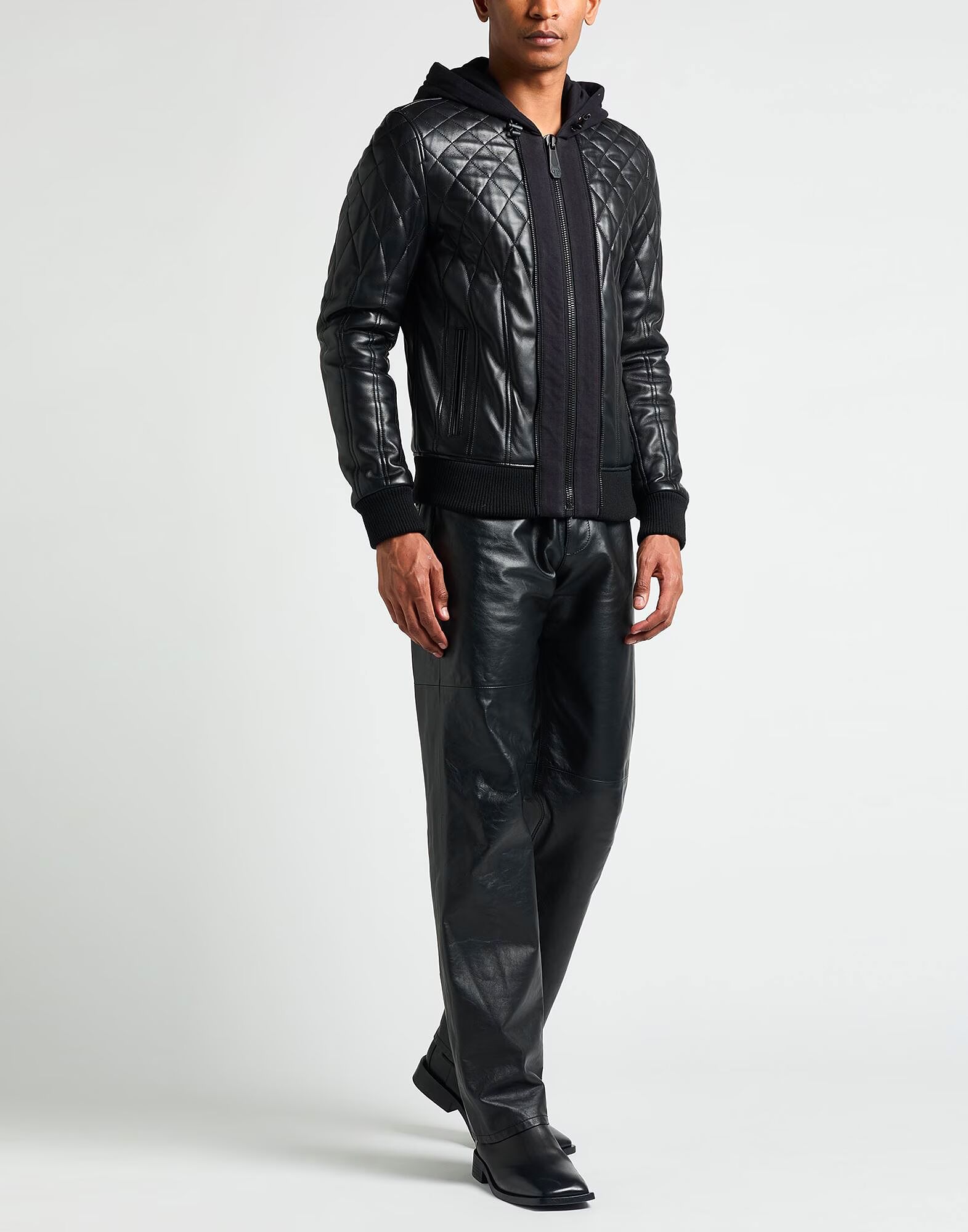 Стеганая куртка, кожа, трикотаж, стеганая, однотонная, с логотипом бренда, с капюшоном, длинные рукава, полностью на подкладке, застежка-молния, прорезные карманы, содержит нетекстильные части животного происхождения, не подвергать химчистке, не отбеливать, не сушить в сушильной машине, не гладить