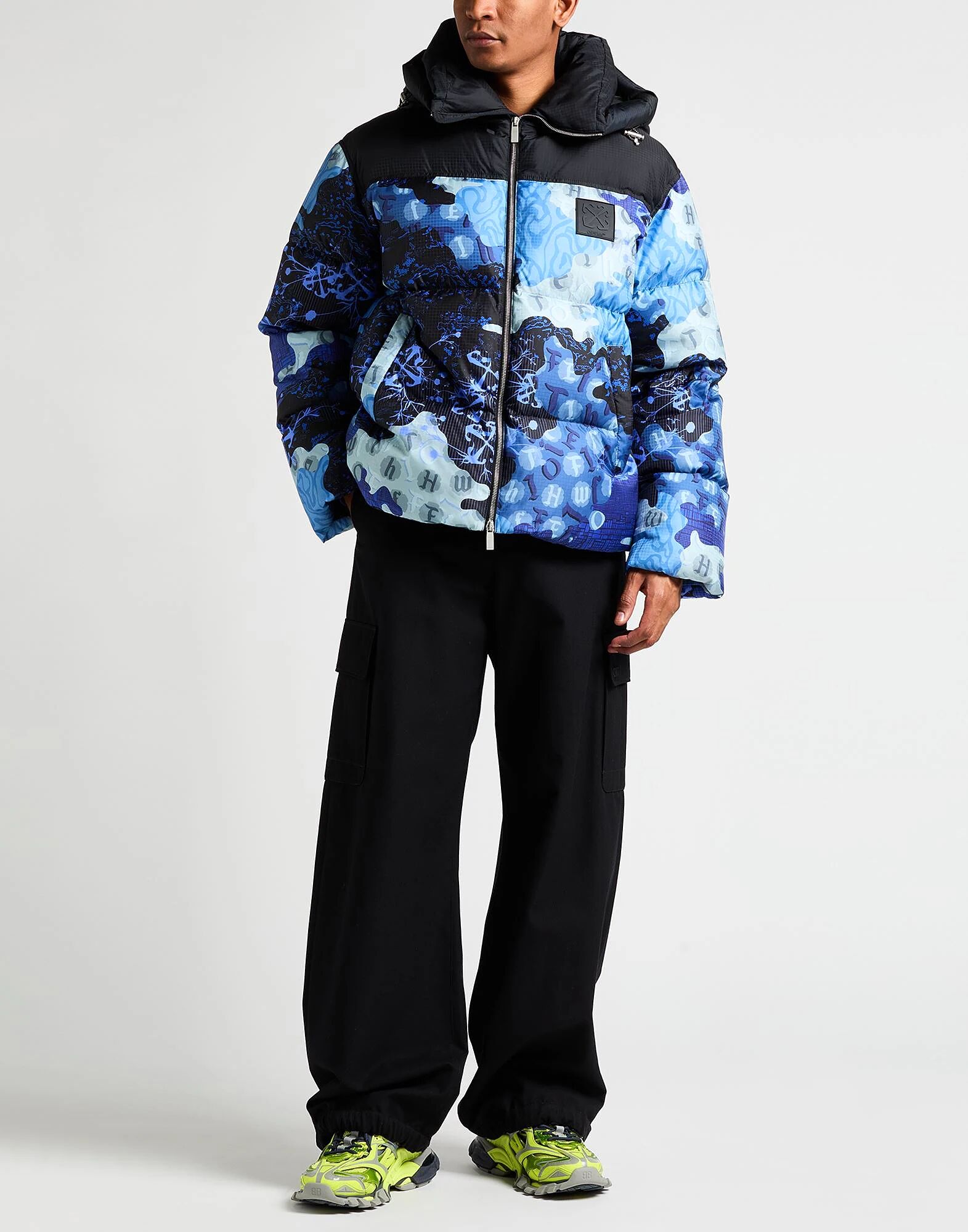 Пуховая куртка, верхняя ткань, логотип бренда, многоцветная, с капюшоном, длинные рукава, подкладка из гусиного пуха, плотный наполнитель, застежка-молния, карманы, содержит нетекстильные части животного происхождения, машинная стирка или химчистка, не отбеливать, не сушить в сушильной машине