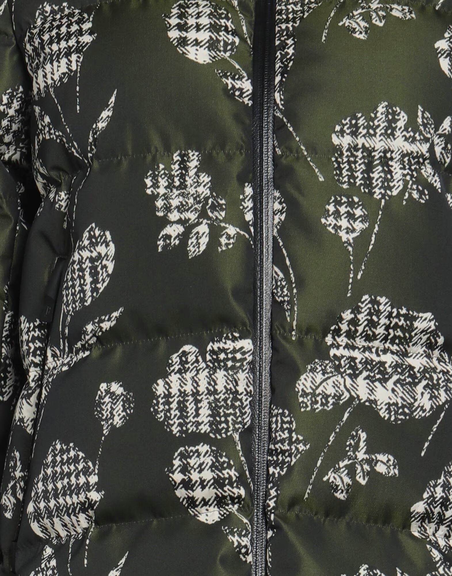 Пуховое пальто, верх, жаккард, без аппликаций, цветочный принт, с капюшоном, длинные рукава, подкладка из гусиного пуха, плотный утеплитель, застежка-молния, карманы, содержит нетекстильные части животного происхождения, ручная стирка, не отбеливать, не сушить в сушильной машине