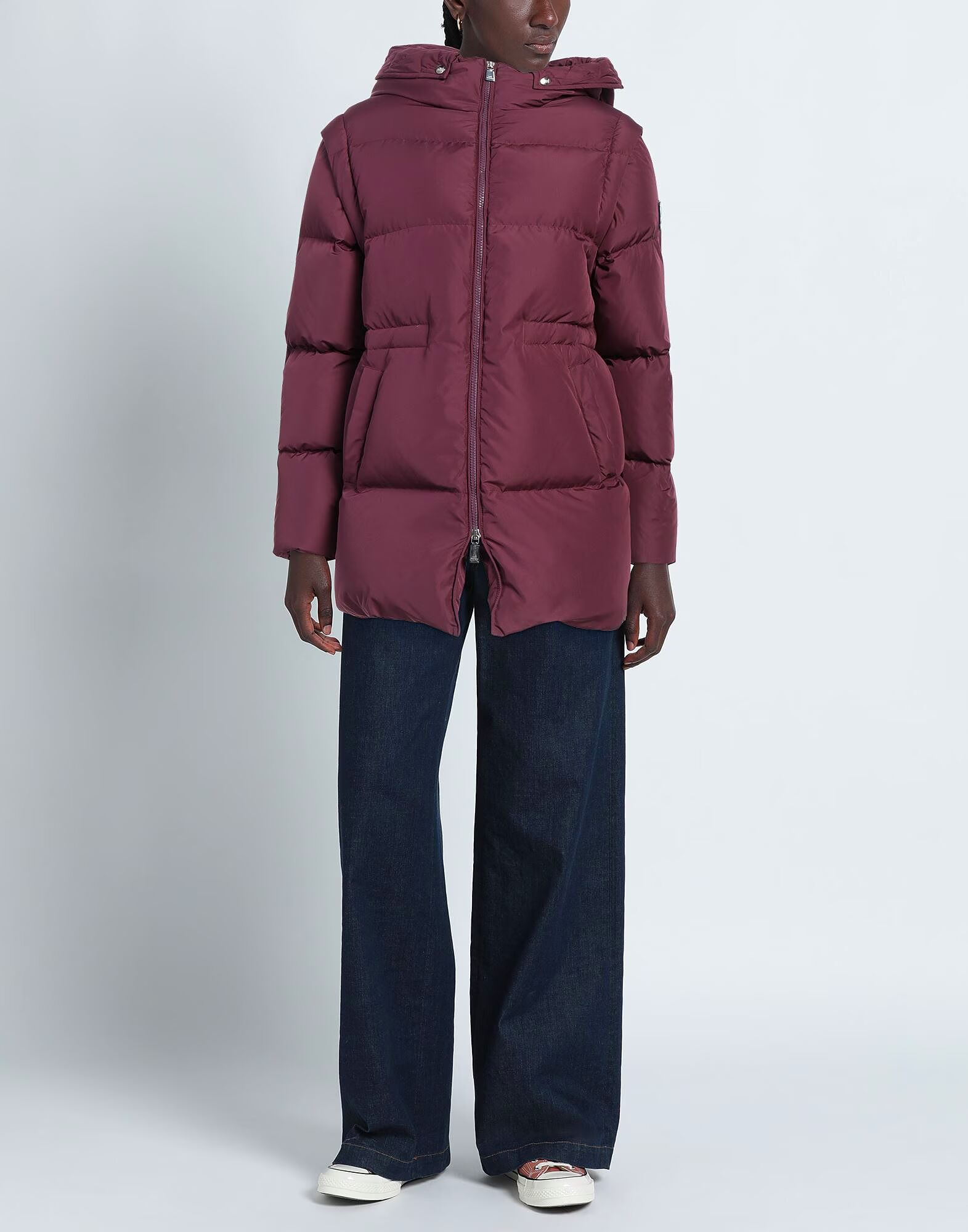 Пуховая куртка, верхняя, стеганая, однотонная, с логотипом бренда, с капюшоном, однобортная, длинные рукава, съемные рукава, подкладка из гусиного пуха, застежка-молния, множество карманов, содержит нетекстильные части животного происхождения, ручная стирка или химчистка, не отбеливать, не сушить в сушильной машине