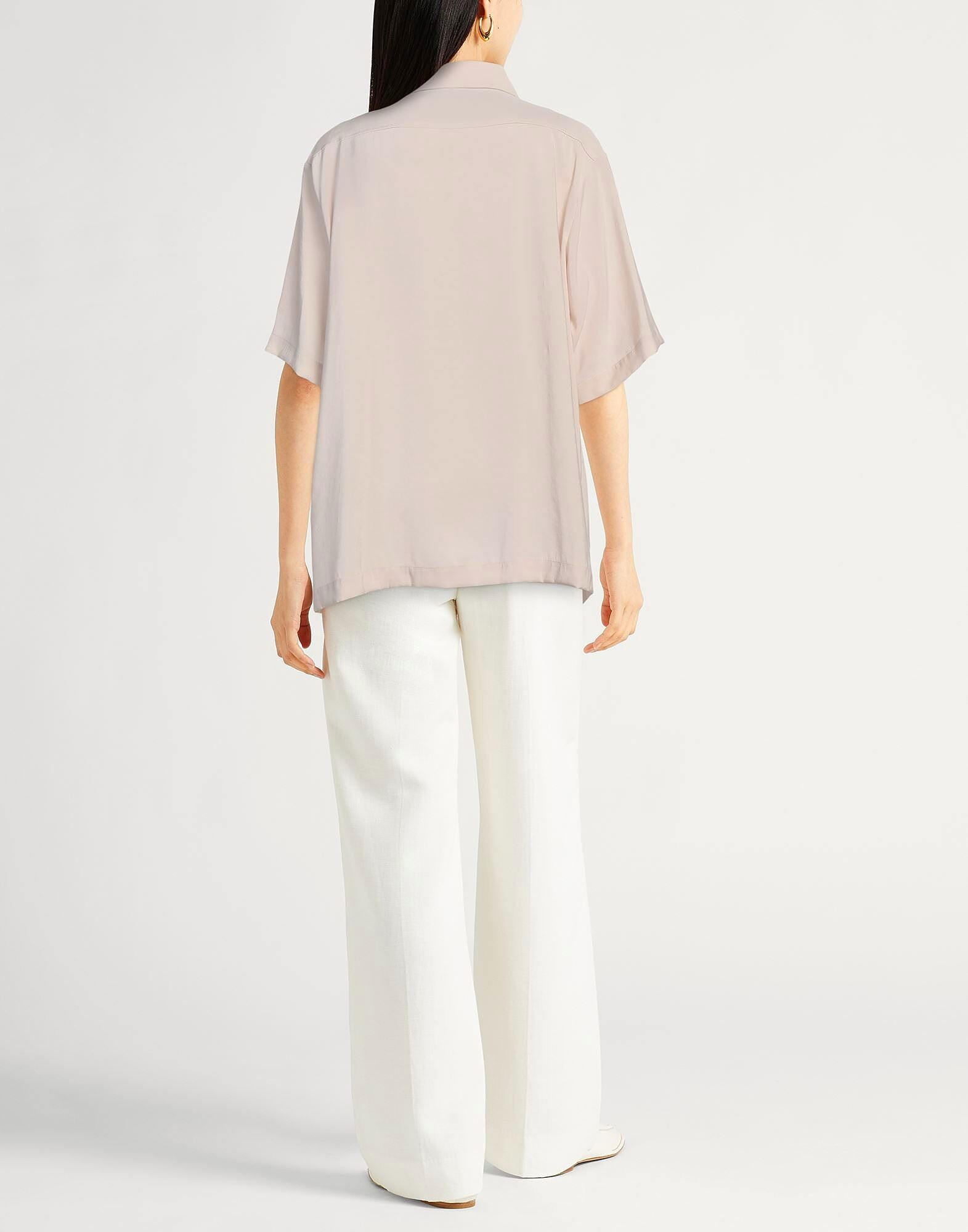Рубашка свободного кроя, тканая, однотонная, без аппликаций, классический воротник, короткие рукава, застежка на пуговицы, один нагрудный карман, химчистка, не отбеливать, не сушить в сушильной машине