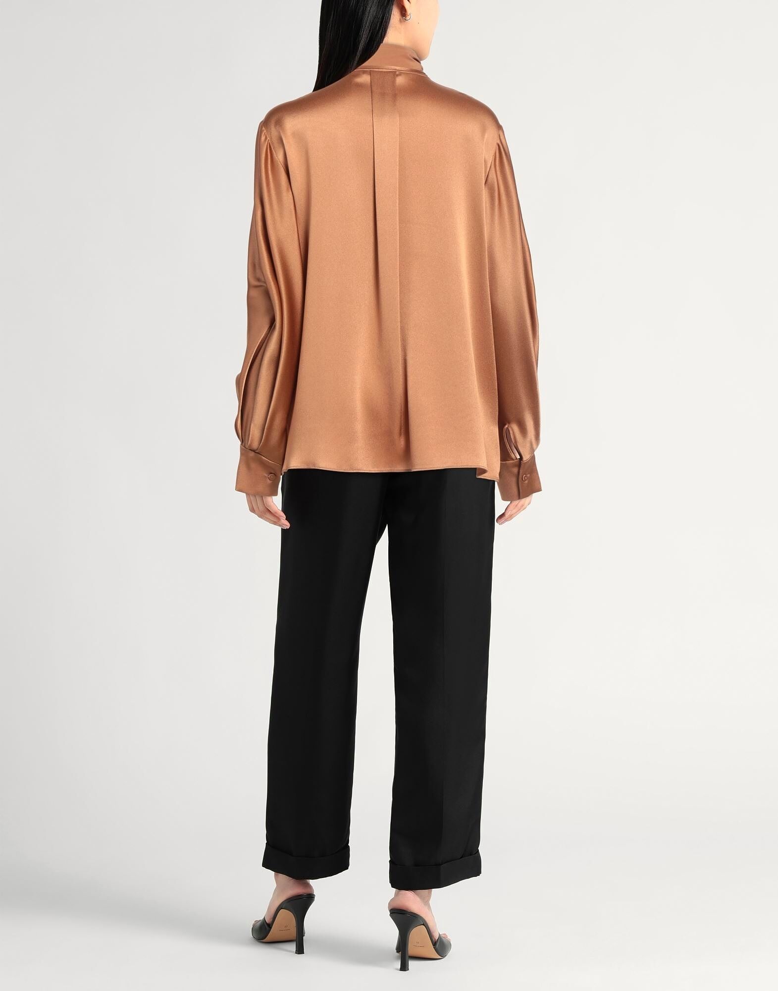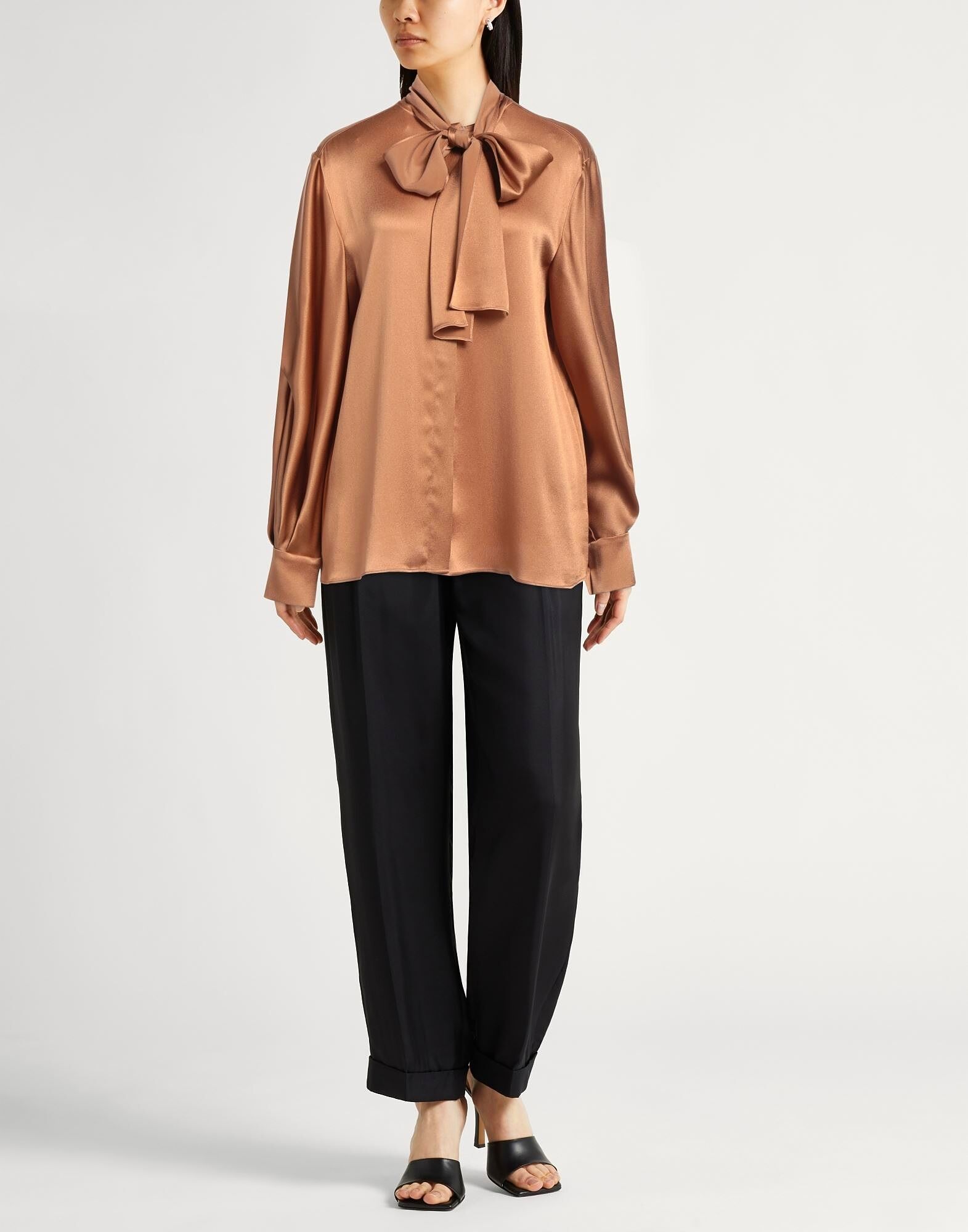 Рубашка с бантом, атлас, однотонная, без аппликаций, длинные рукава, манжеты на пуговицах, потайная застежка на пуговицы, содержит нетекстильные части животного происхождения, химчистка, не отбеливать, не сушить в сушильной машине