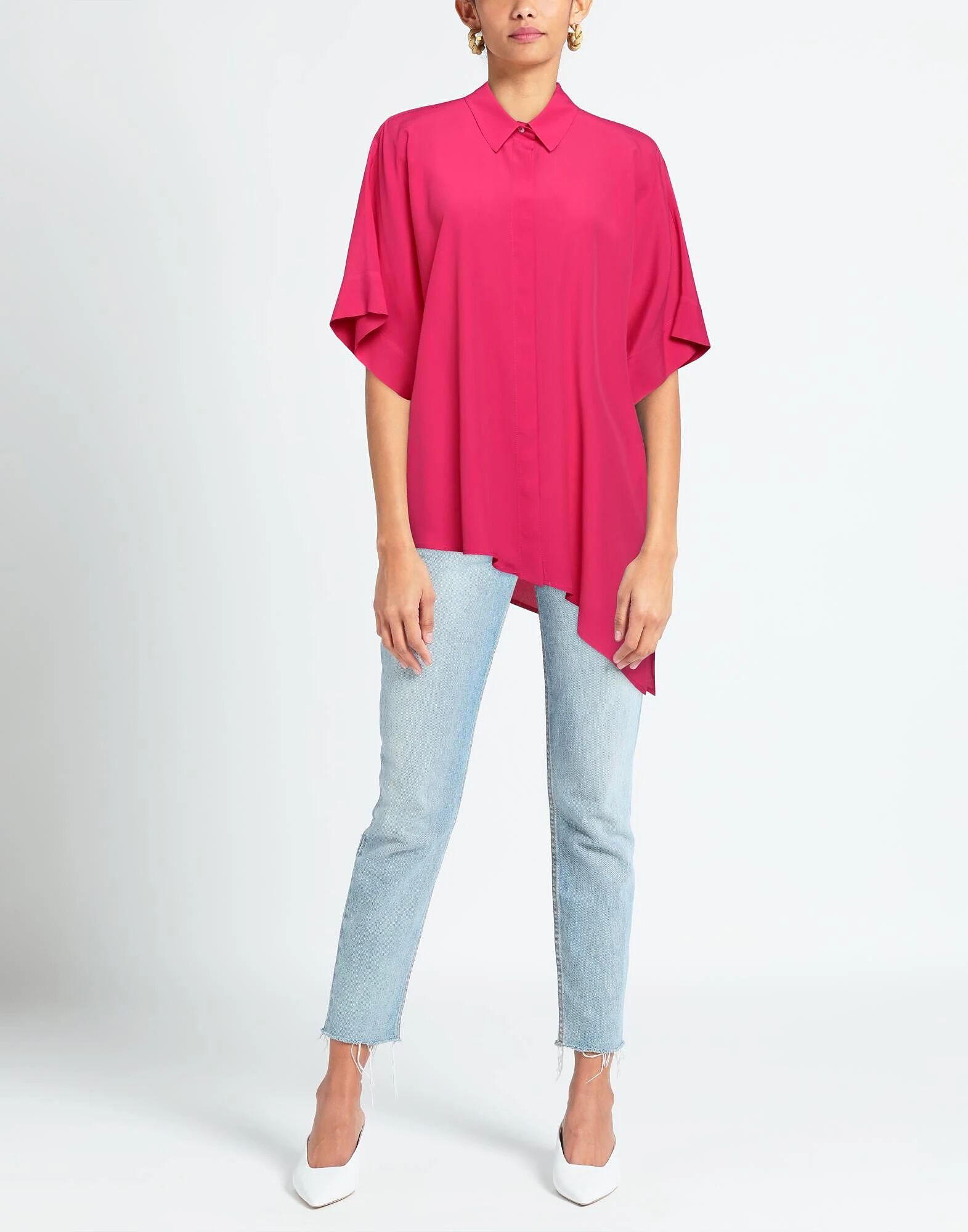 Рубашка, креп, однотонная, без аппликаций, классический воротник, короткие рукава, застежка на пуговицы