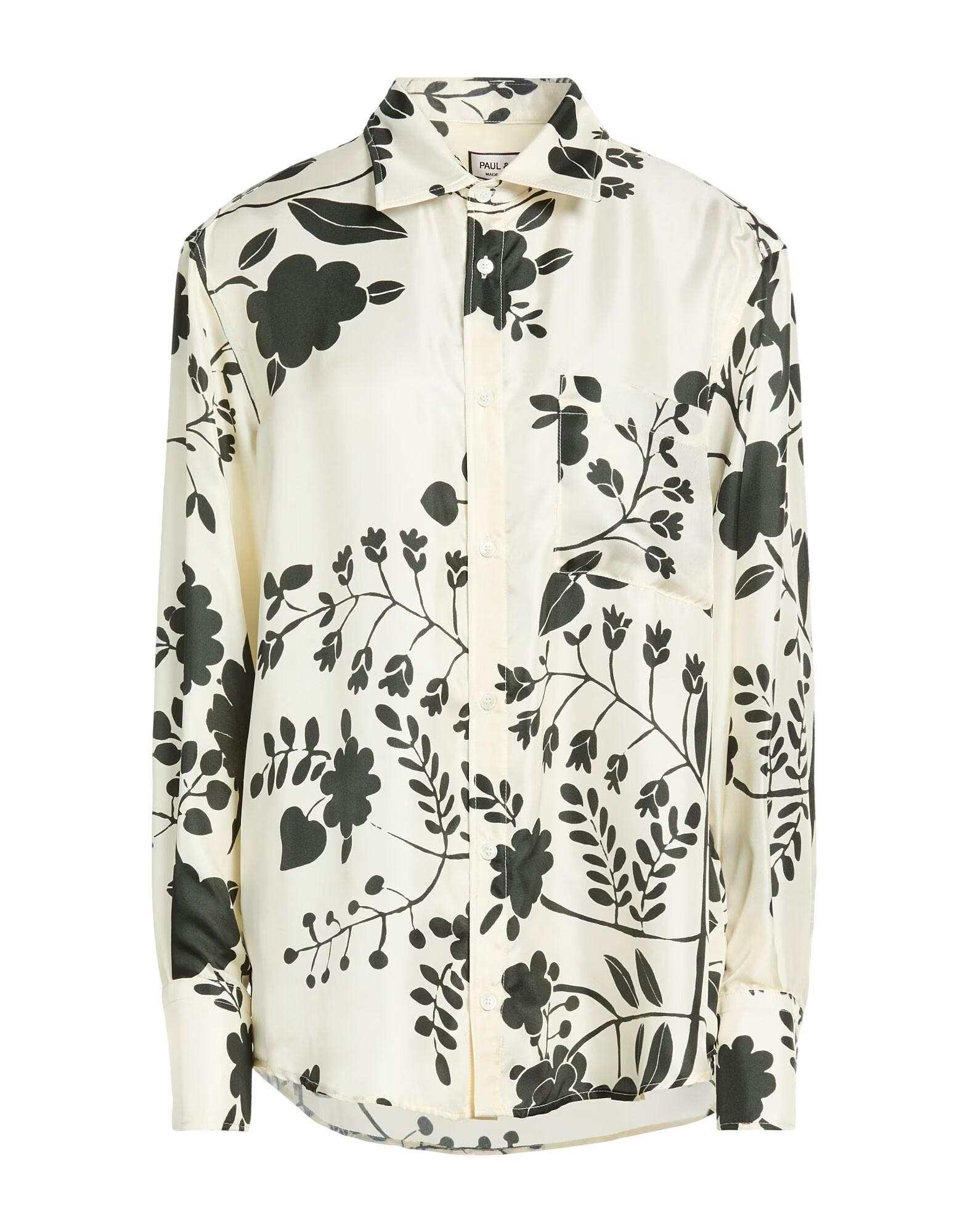 Рубашка, атлас, цветочный принт, без аппликаций, классический воротник, длинные рукава, манжеты на пуговицах, застежка на пуговицы, один нагрудный карман, химчистка, не отбеливать, не сушить в сушильной машине