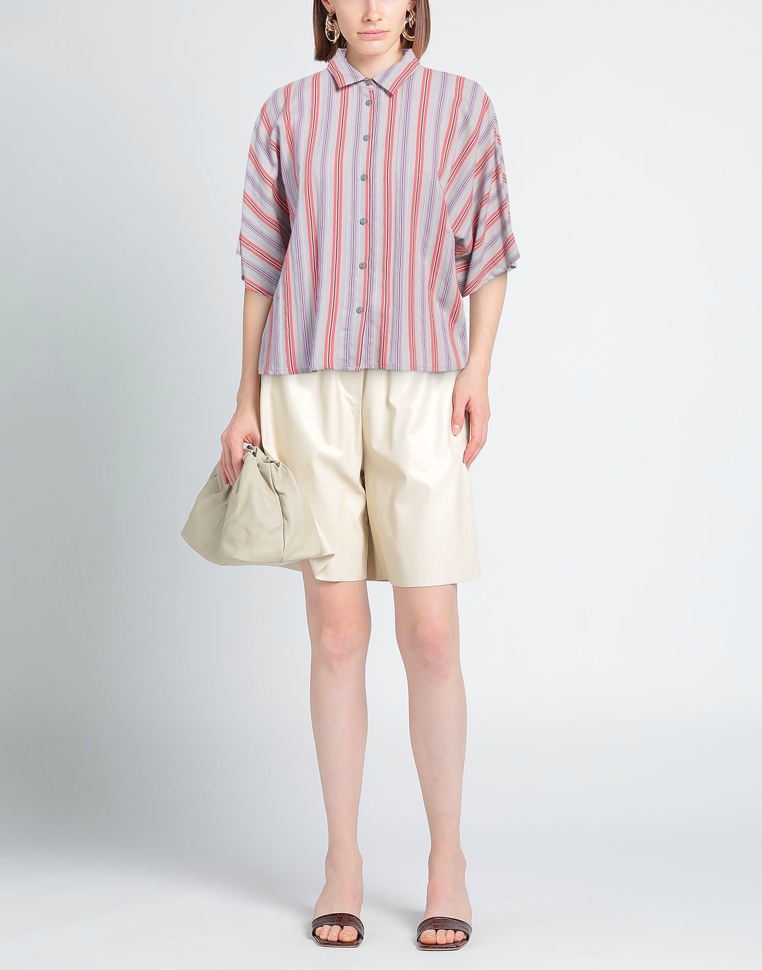 Рубашка, тканая, в полоску, без аппликаций, классический воротник, короткие рукава, застежка на пуговицы, ручная стирка или химчистка, не отбеливать, не сушить в сушильной машине