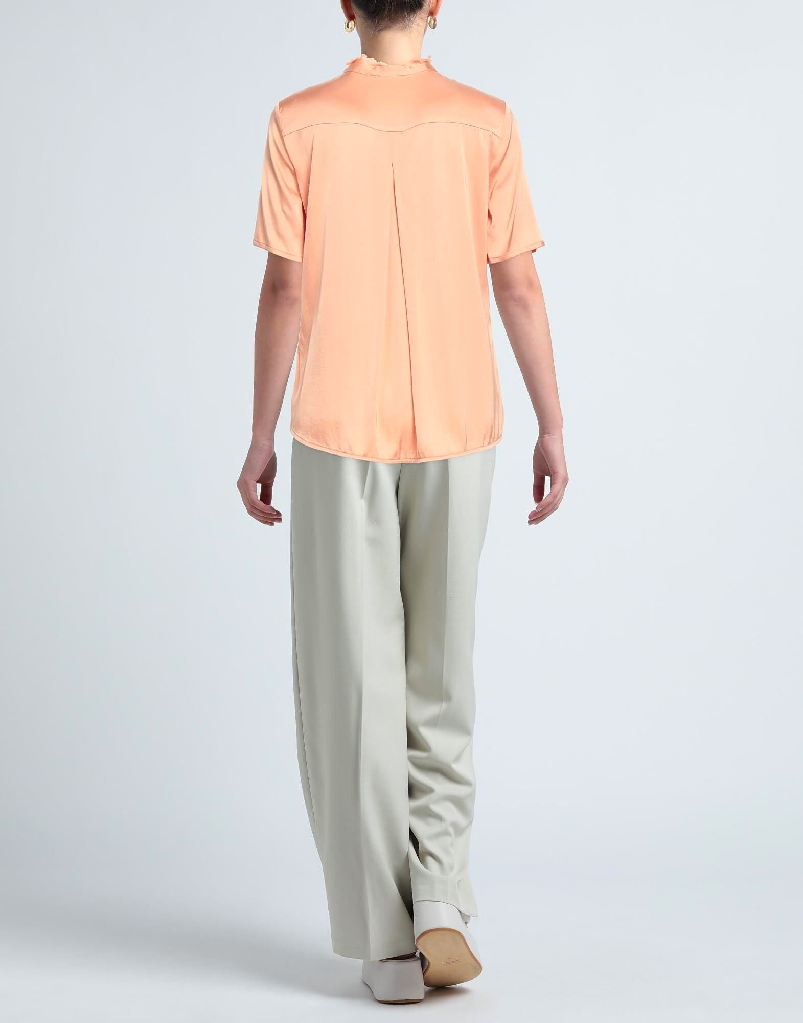 Атлас, без аппликаций, однотонный, V-образный вырез, короткие рукава, застежка на пуговицы, без карманов, эластичный, рубашка