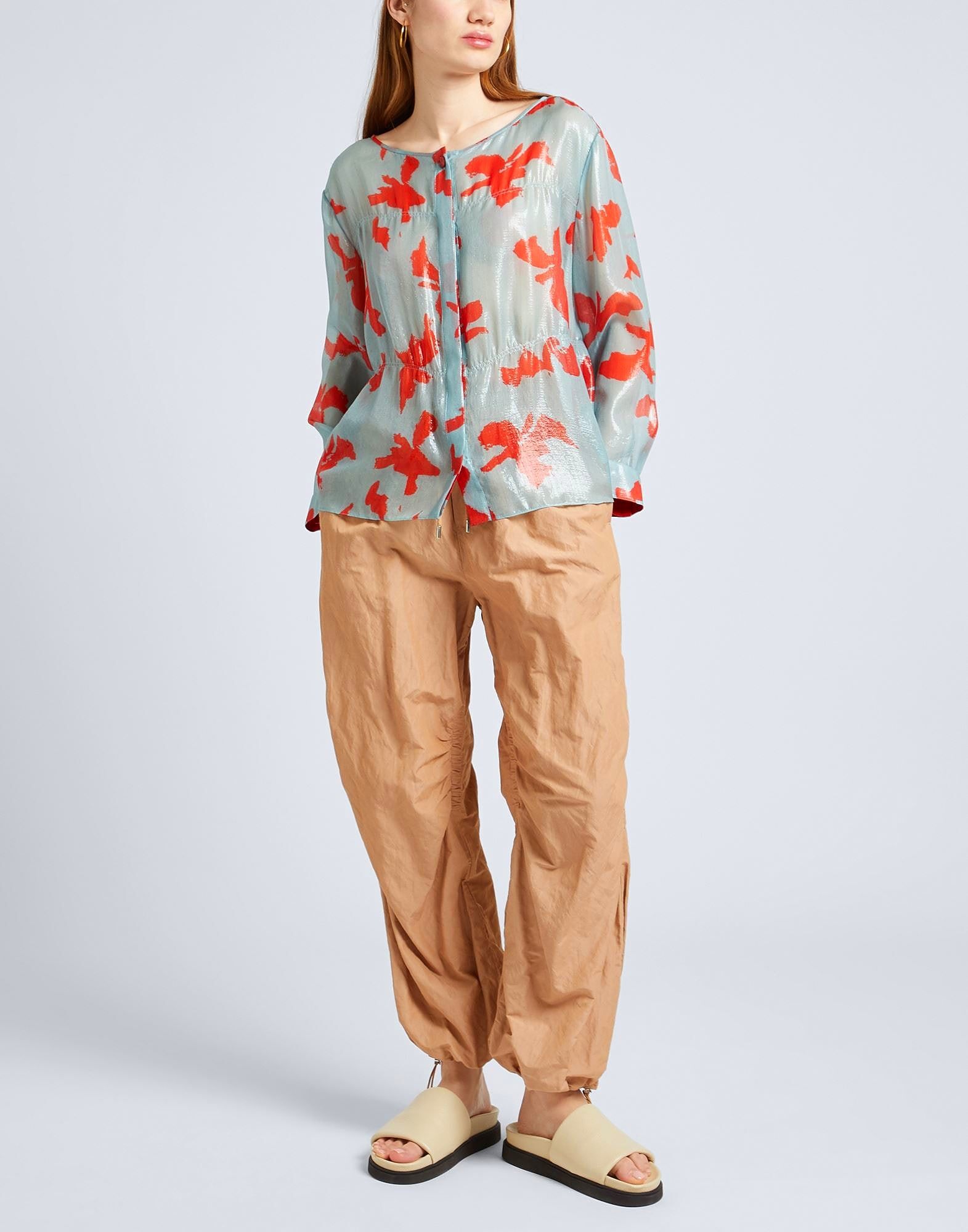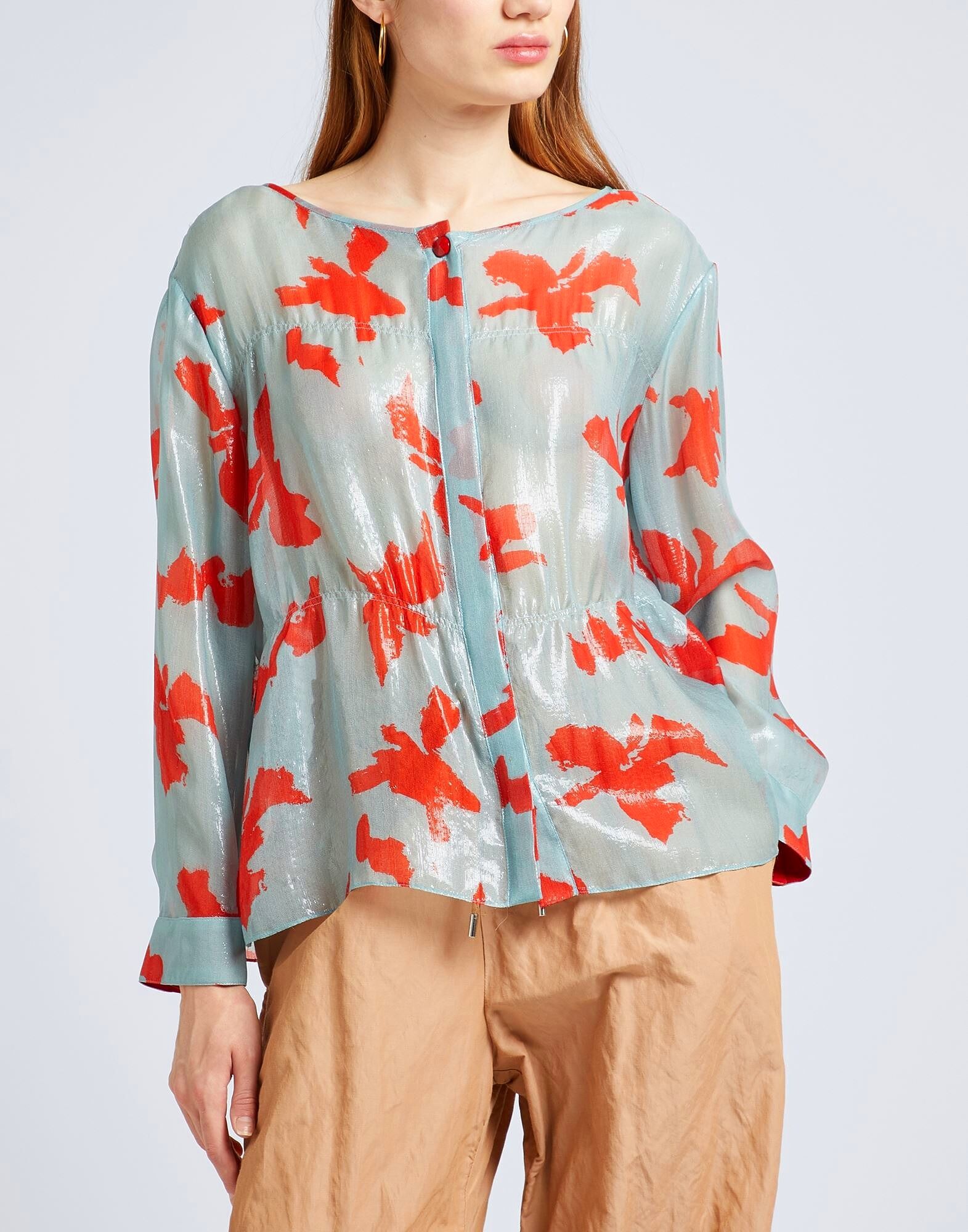 Креп, без аппликаций, двухцветный, круглый вырез, длинные рукава, манжеты на пуговицах, застежка на пуговицы, без карманов, рубашка, маленький размер