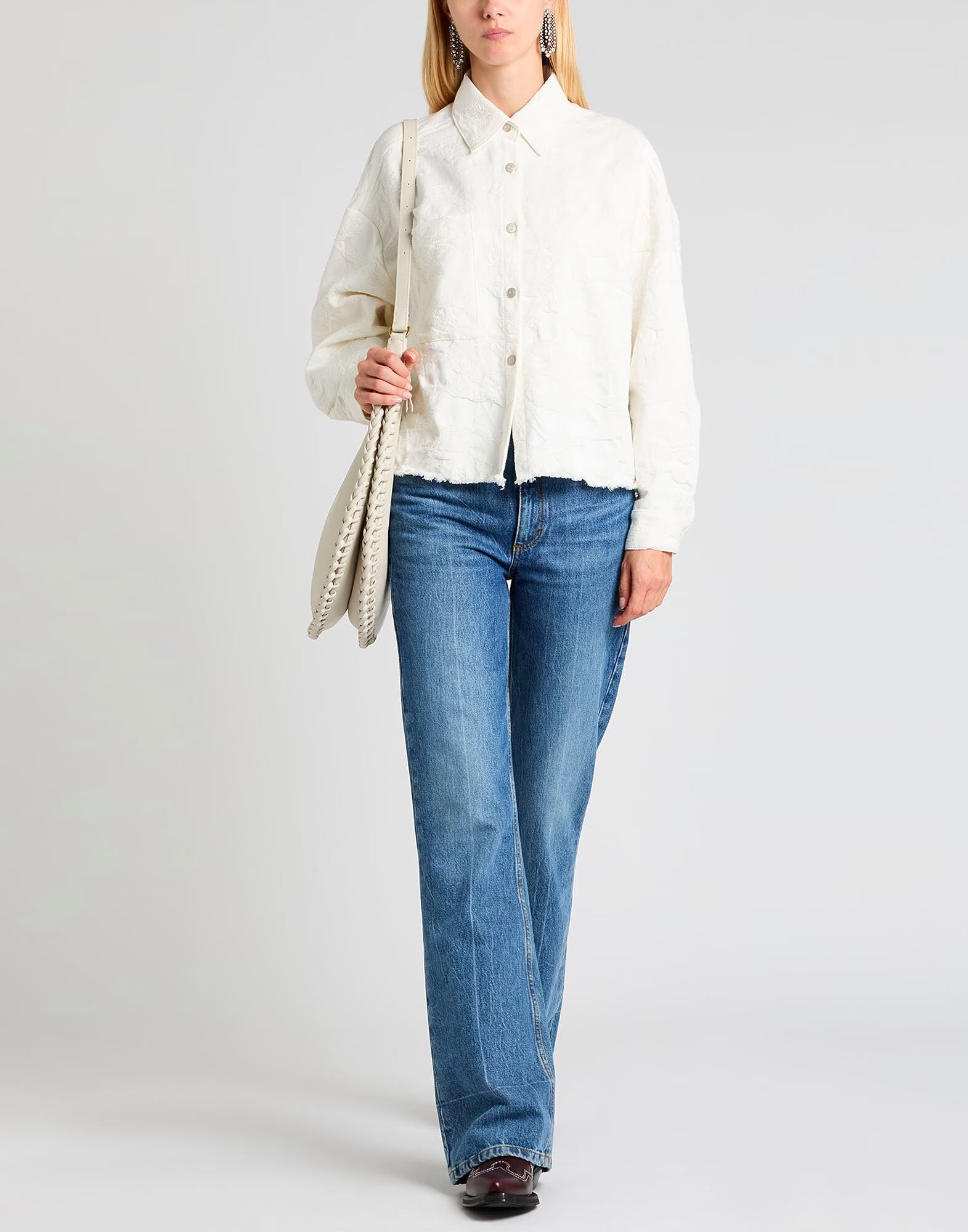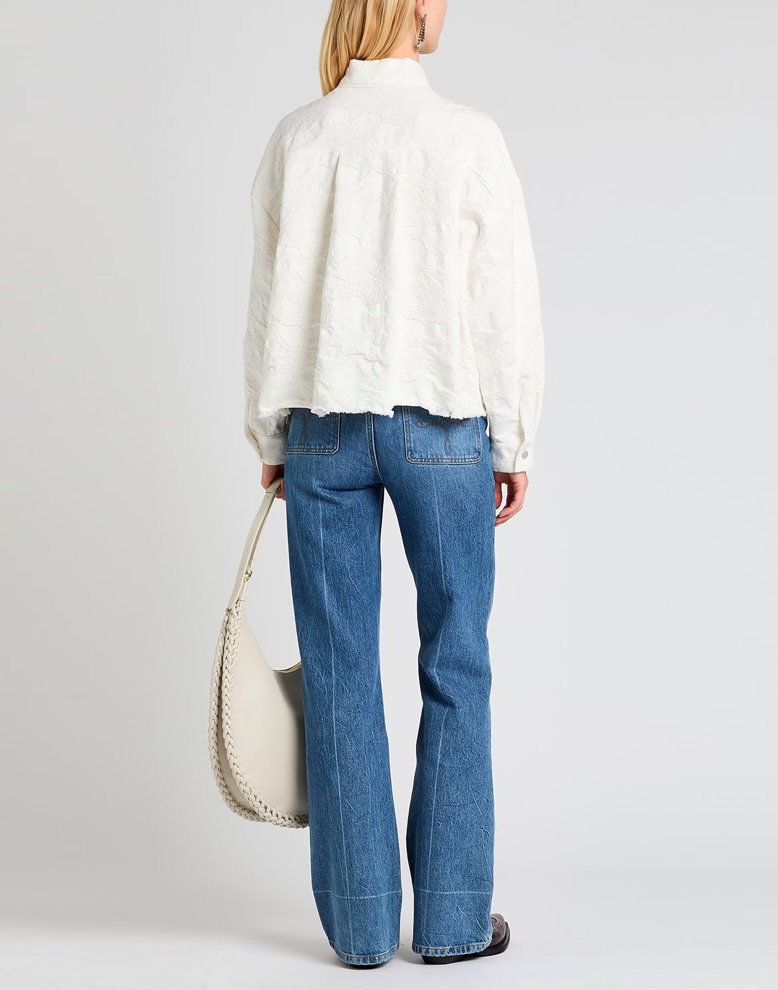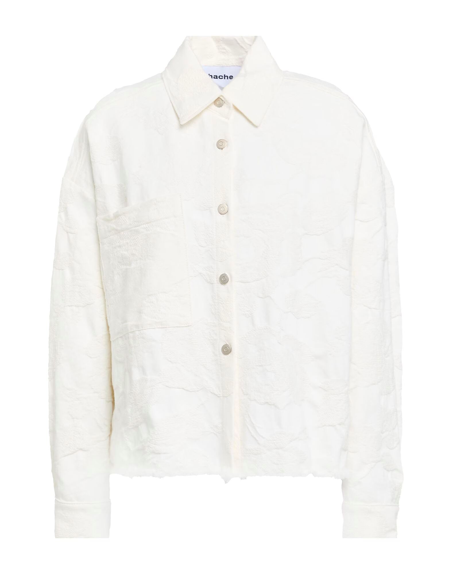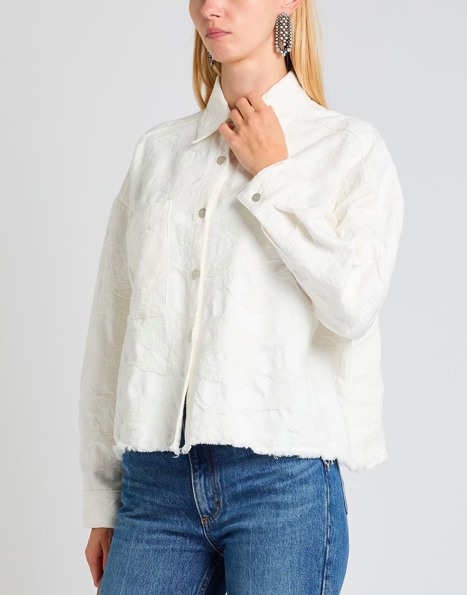 Рубашка-куртка, жаккардовая, однотонная, без аппликаций, классический воротник, длинные рукава, манжеты на пуговицах, застежка на пуговицы, накладной карман, бахрома по низу, ручная стирка или химчистка, не отбеливать, не сушить в сушильной машине