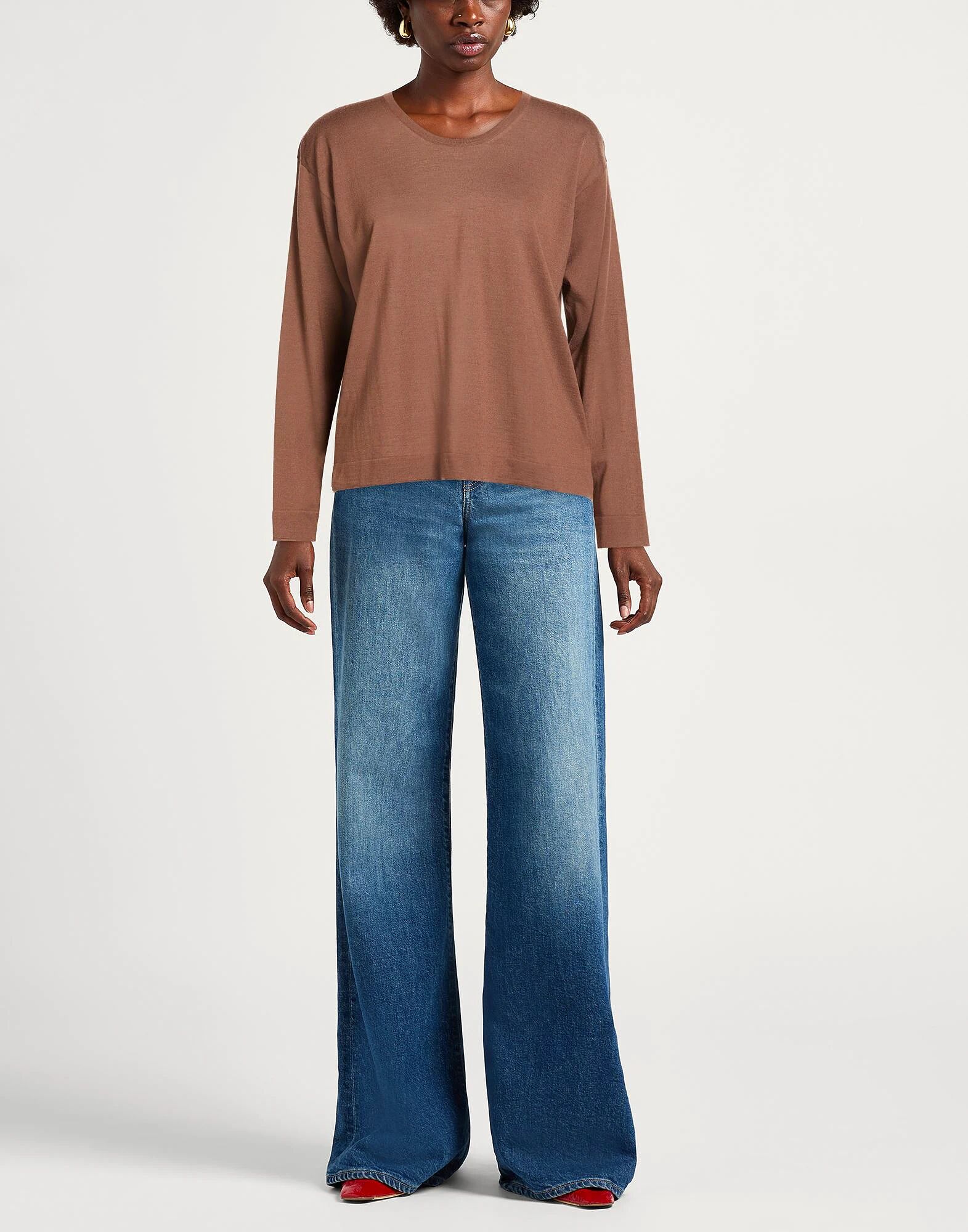 Шерсть, легкий трикотаж, без аппликаций, однотонный, круглый вырез, длинные рукава, ручная стирка или химчистка, не отбеливать, не сушить в сушильной машине