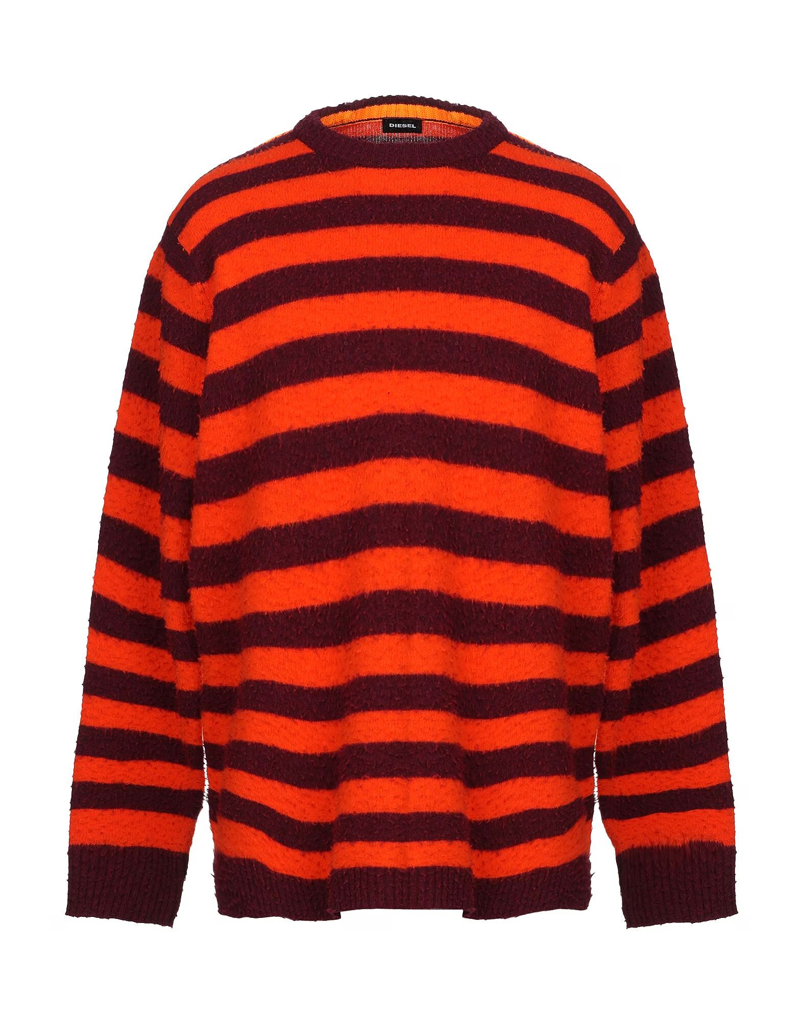Вязаный свитер с логотипом, круглый воротник, легкий, длинные рукава, без карманов, боковой разрез по низу, многоцветный узор