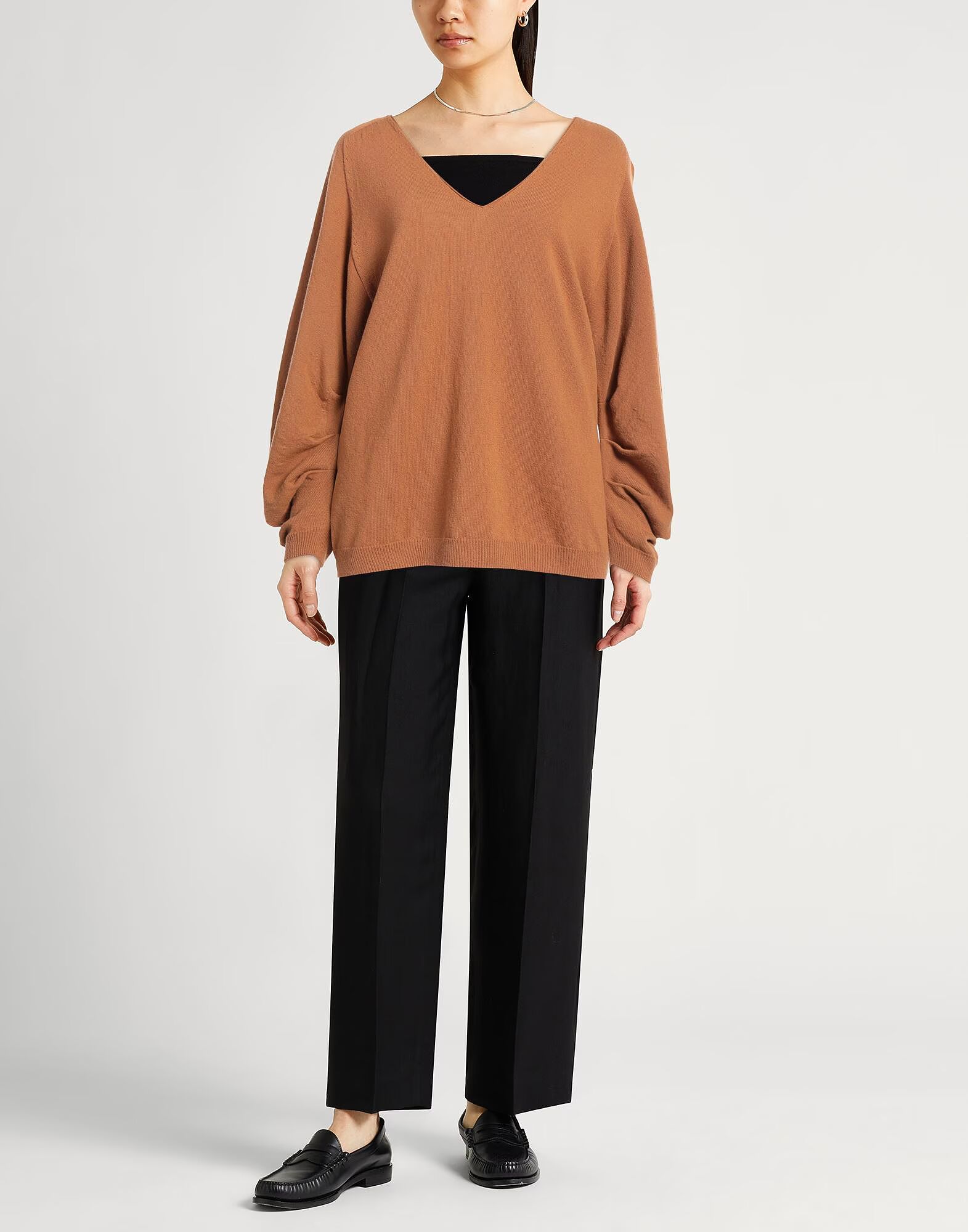 Вязаное, легкое трикотажное полотно, однотонное, с вытачками, V-образным вырезом, длинными рукавами, ручная стирка или химчистка, не отбеливать, не сушить в сушильной машине