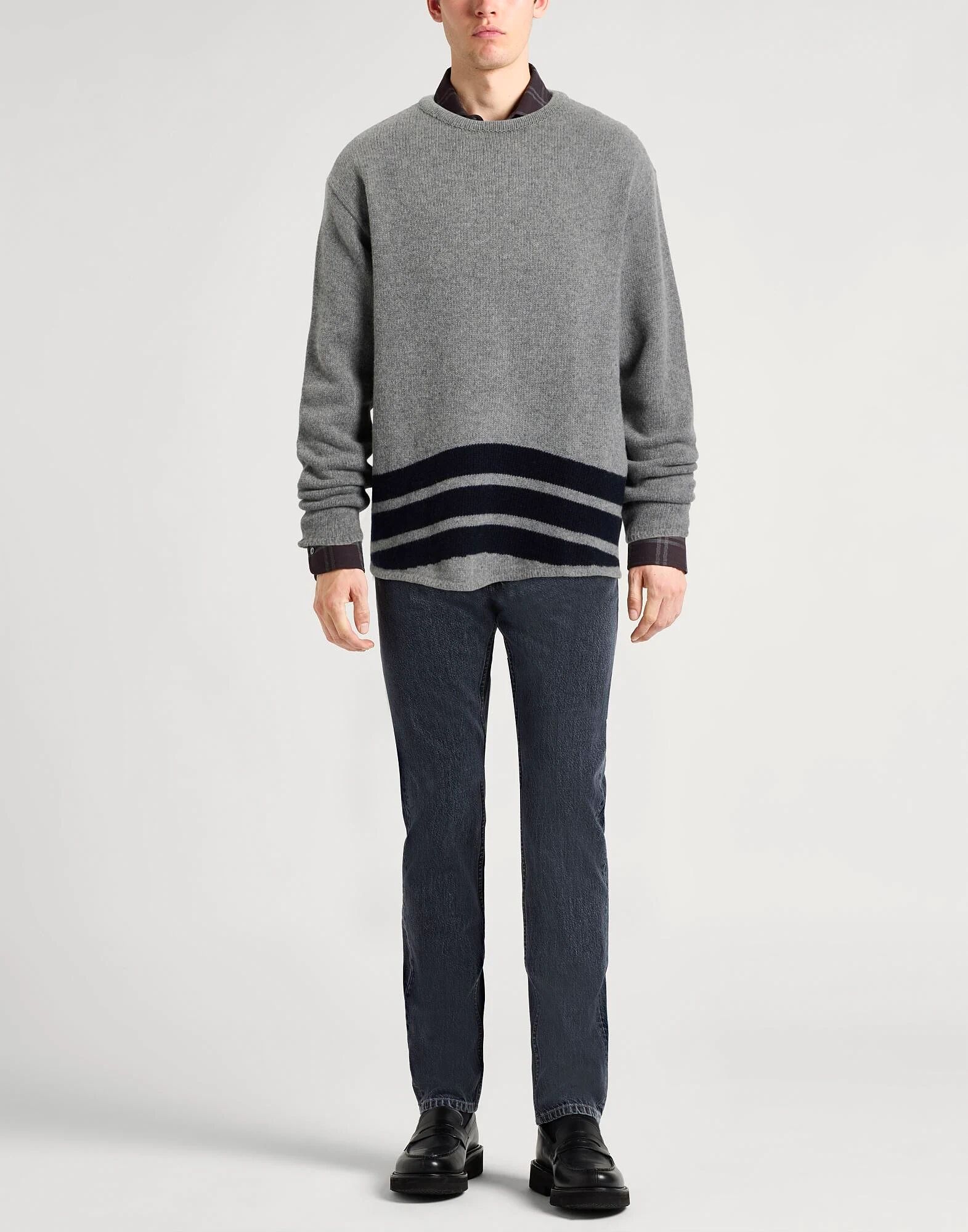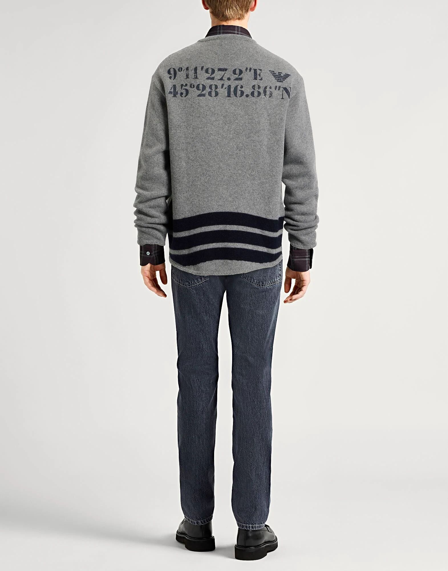Вязание интарсия, средней плотности, логотип бренда, принт, меланж, круглый вырез, длинные рукава, ручная стирка или химчистка, не отбеливать, не сушить в сушильной машине