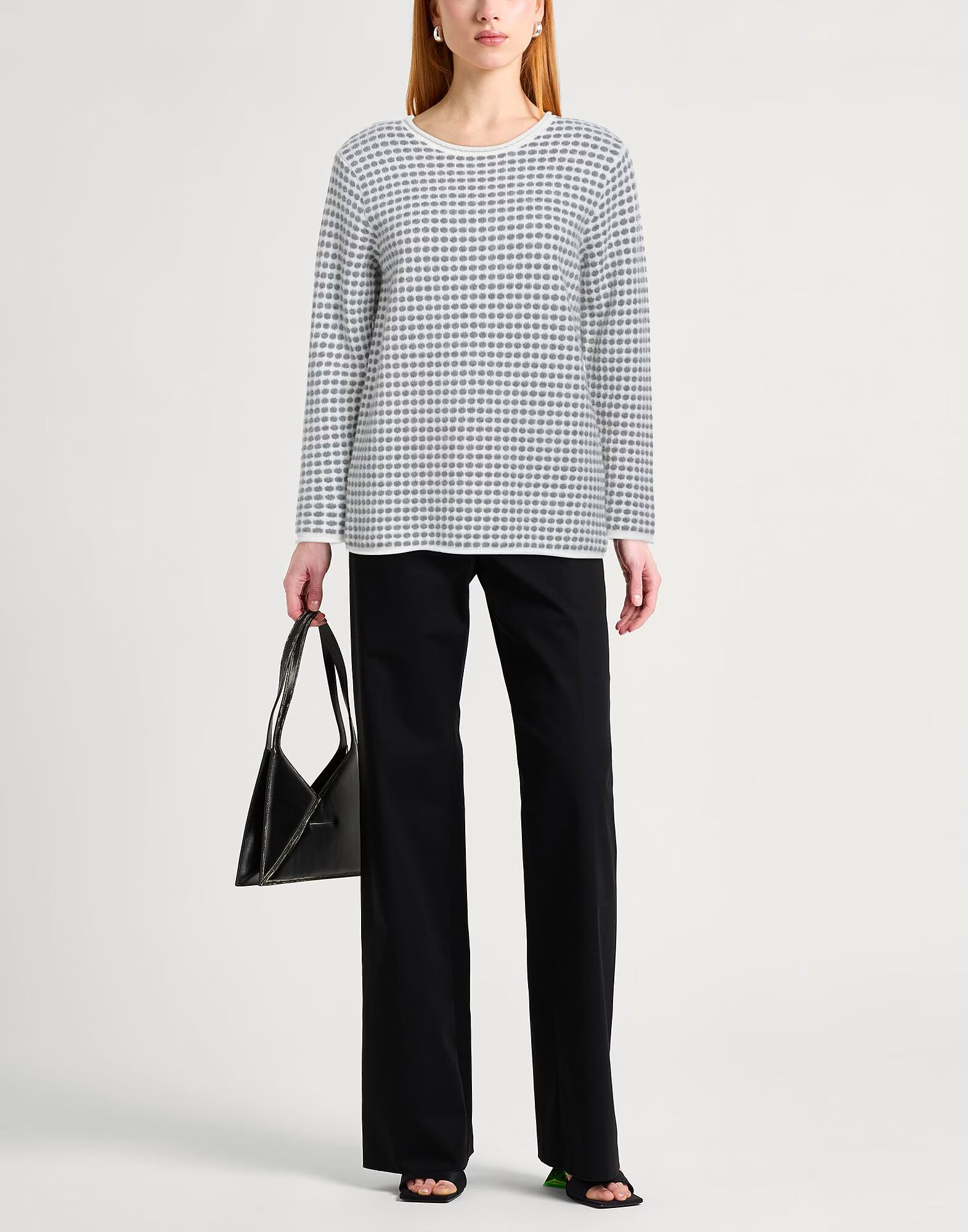 Шерсть, жаккардовая вязка, вязка средней плотности, без аппликаций, в горошек, круглый вырез, длинные рукава, ручная стирка или химчистка, не отбеливать, не сушить в сушильной машине