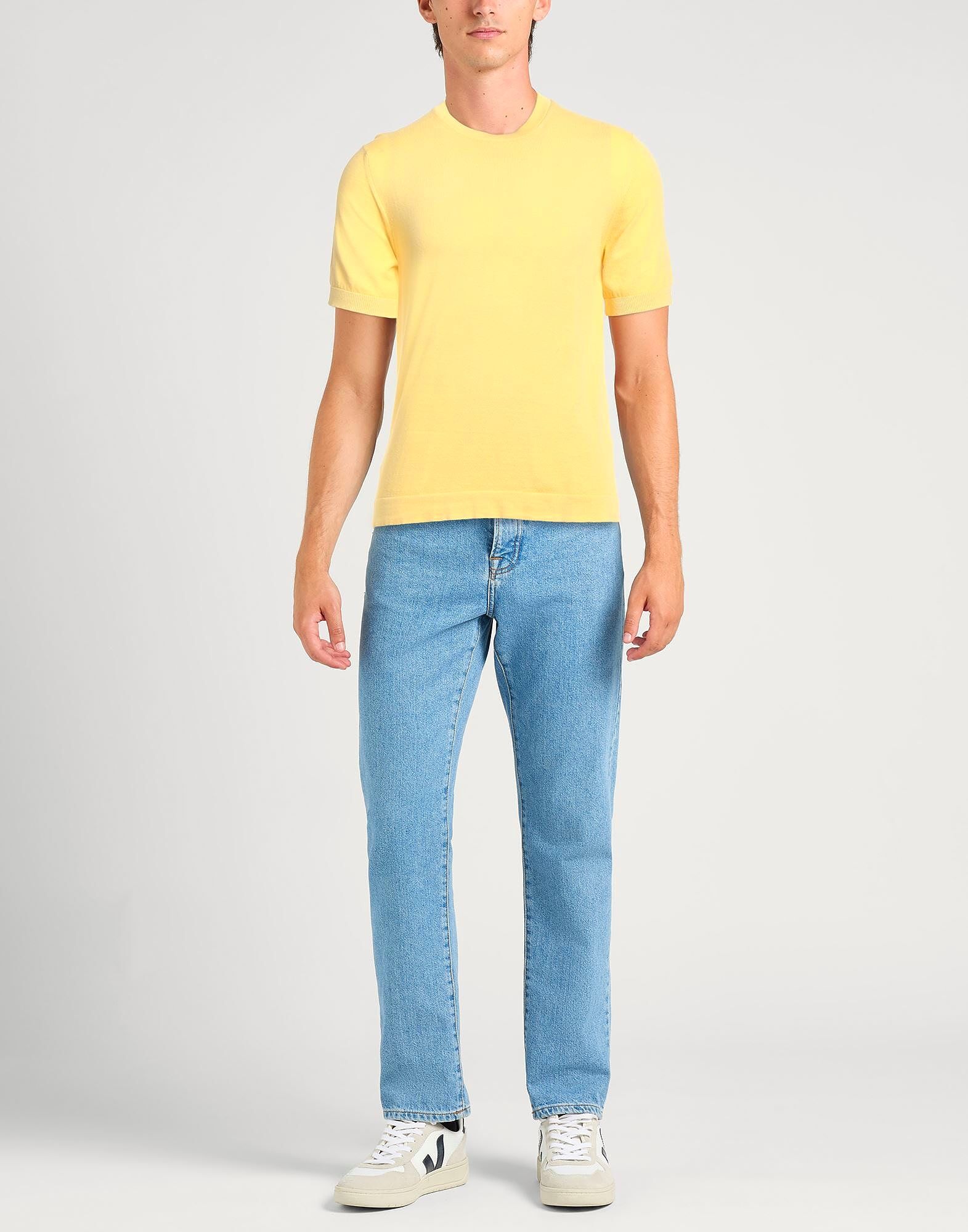 Вязаное, легкое трикотажное полотно, однотонное, без аппликаций, круглый вырез, короткие рукава, машинная стирка или химчистка, не отбеливать, не сушить в сушильной машине