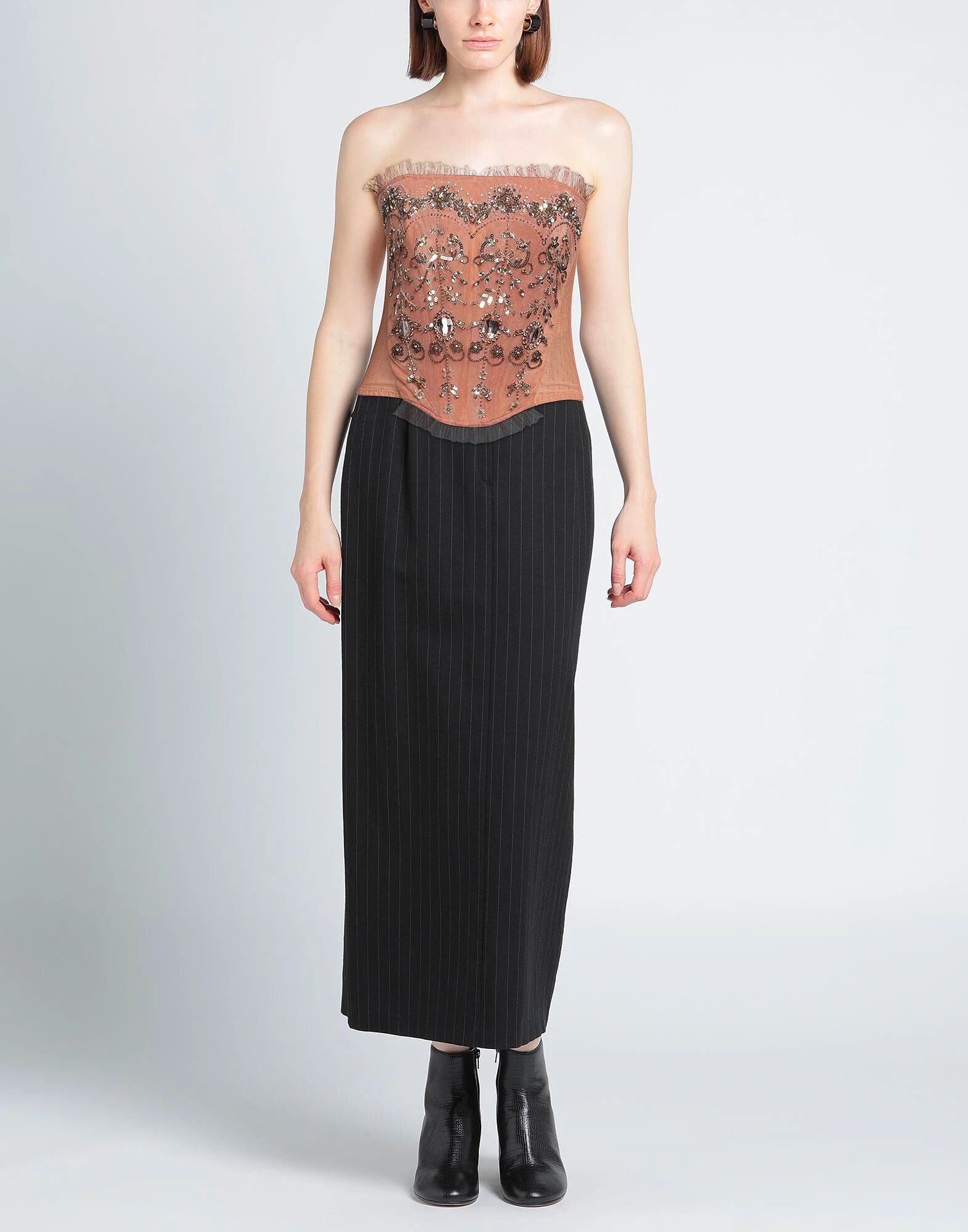 Корсет, тюль, однотонный, с аппликациями, кристаллами, пайетками, глубокий вырез, внутренние косточки, завязками Размеры этого бренда маломерят