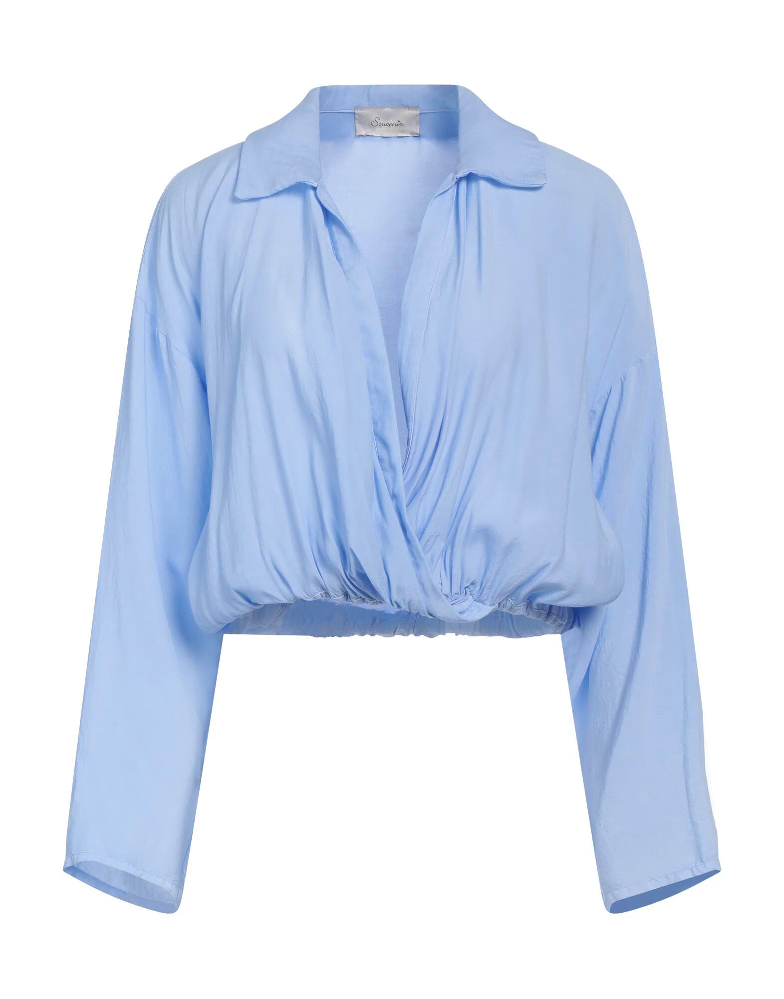 Топ, тканый, однотонный, без аппликаций, глубокий вырез, длинные рукава, эластичный низ, машинная стирка или химчистка, не отбеливать, не сушить в сушильной машине