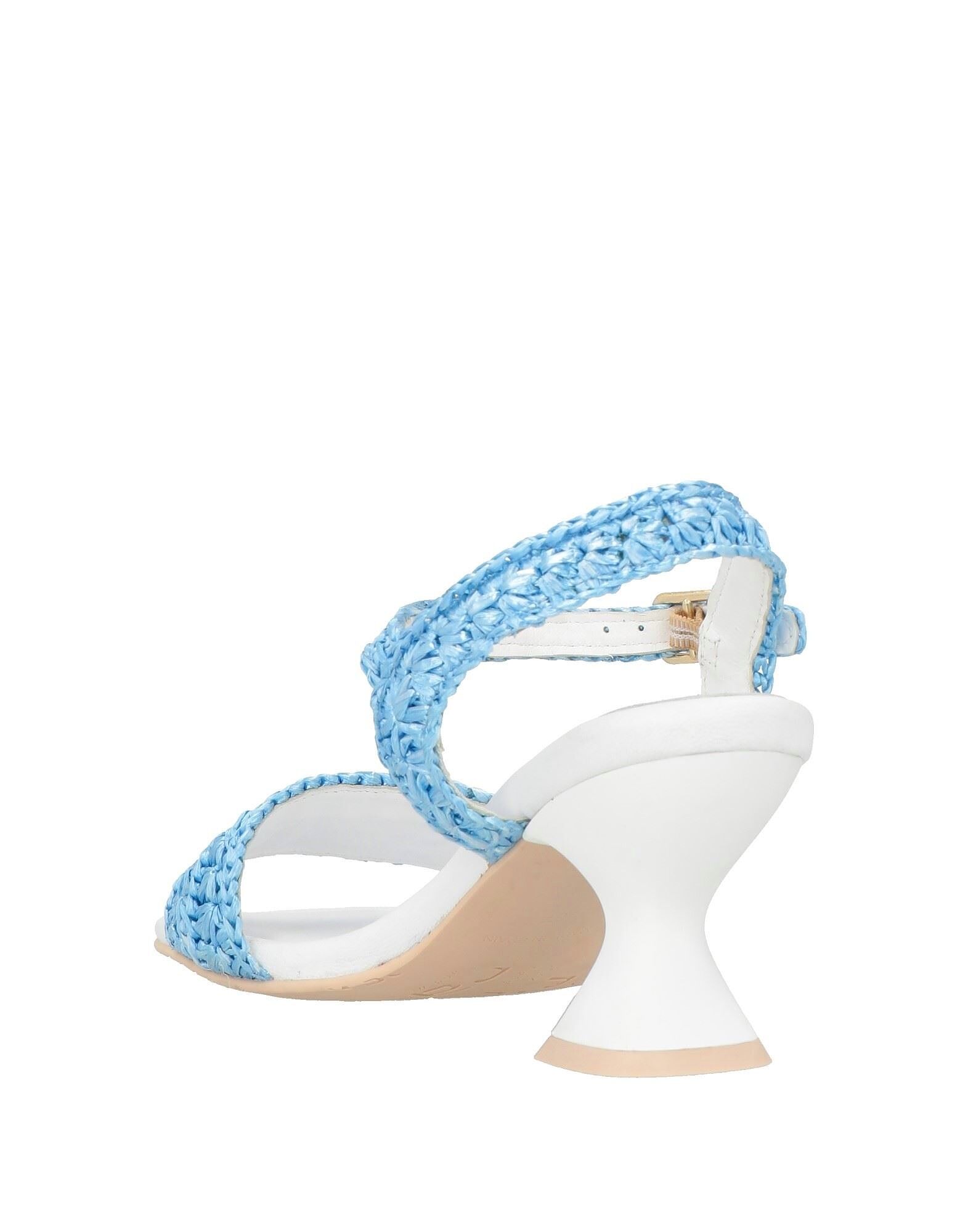 Сандалии из искусственной рафии, однотонные, с аппликациями, украшенные, с ремешком на щиколотке с пряжкой, квадратный носок, каблук-катушка, резиновая подошва, кожаная подкладка, содержат нетекстильные части животного происхождения