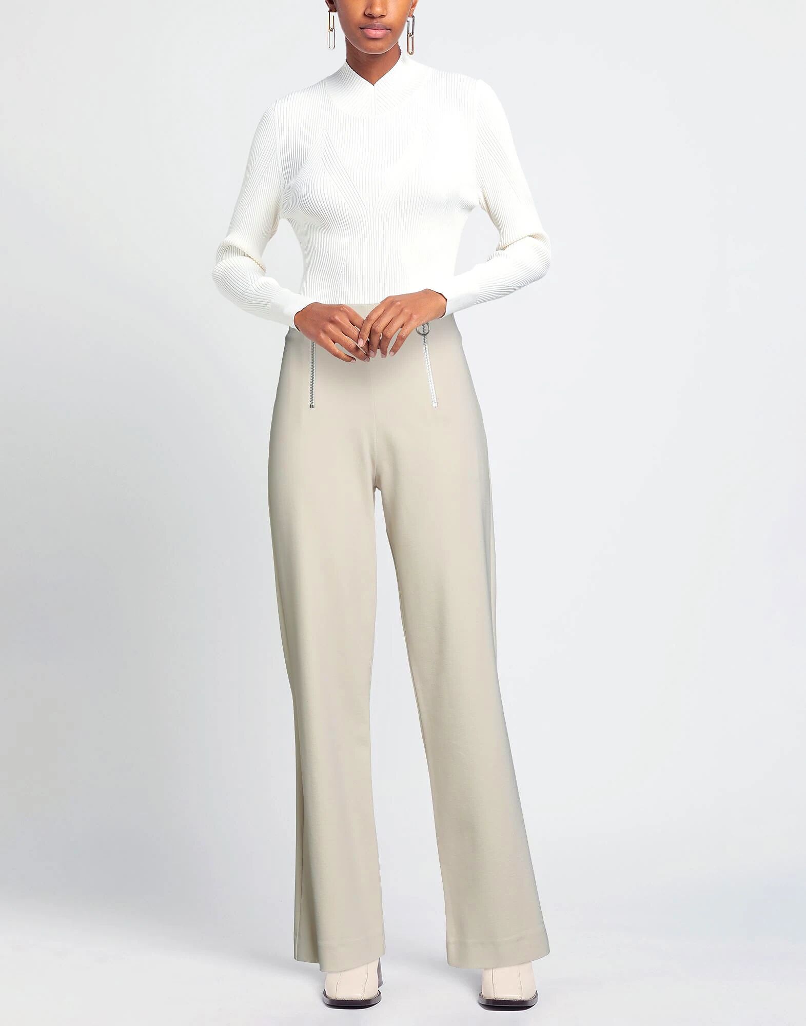 Широкие брюки, трикотаж, однотонные, без аппликаций, высокая талия, стандартный крой, застежка-молния, эластичные, ручная стирка или химчистка, не отбеливать, не сушить в сушильной машине
