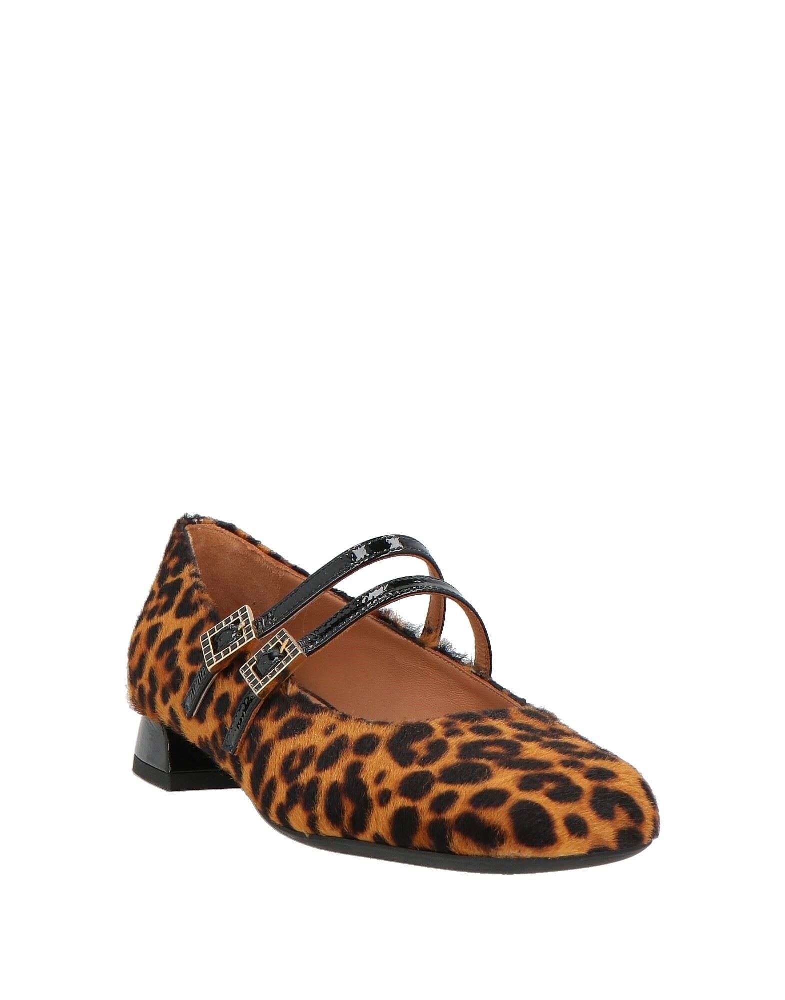 Балетки «Мэри Джейн», телячья кожа, леопардовый принт, отделка из лакированной кожи, кожаная подкладка, застежка на пряжку, квадратный носок, плоская подошва, резиновая подошва, содержат нетекстильные части животного происхождения, большой размер