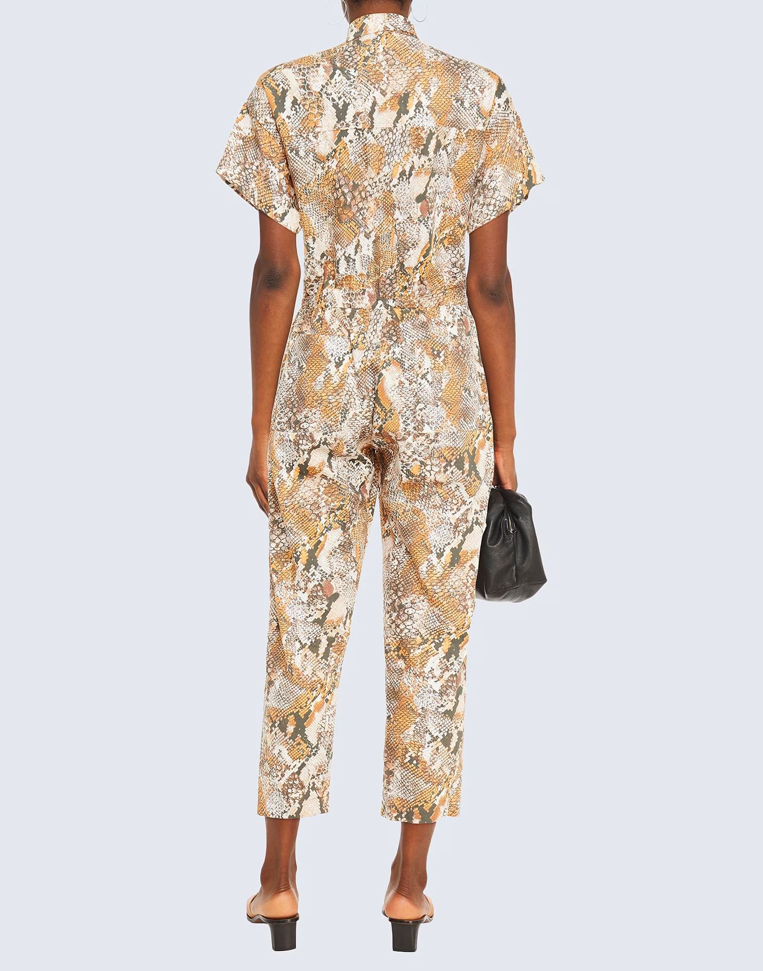 Ткань простого переплетения, без аппликаций, животный принт, классический вырез горловины, короткие рукава, застежка на пуговицы, множество карманов