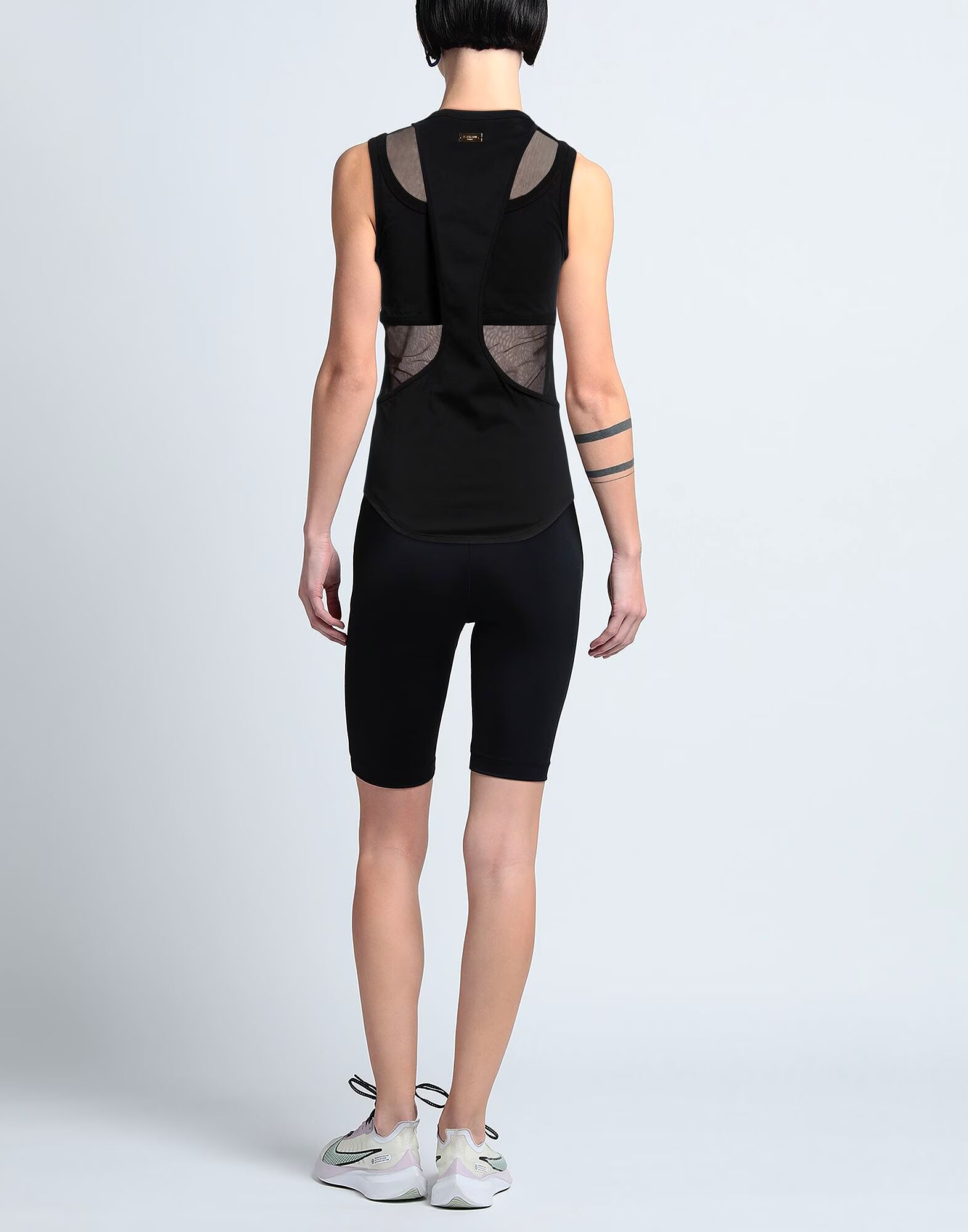 Трикотажная футболка, тюль, логотип бренда, однотонная, круглый вырез, без рукавов, без карманов, топ