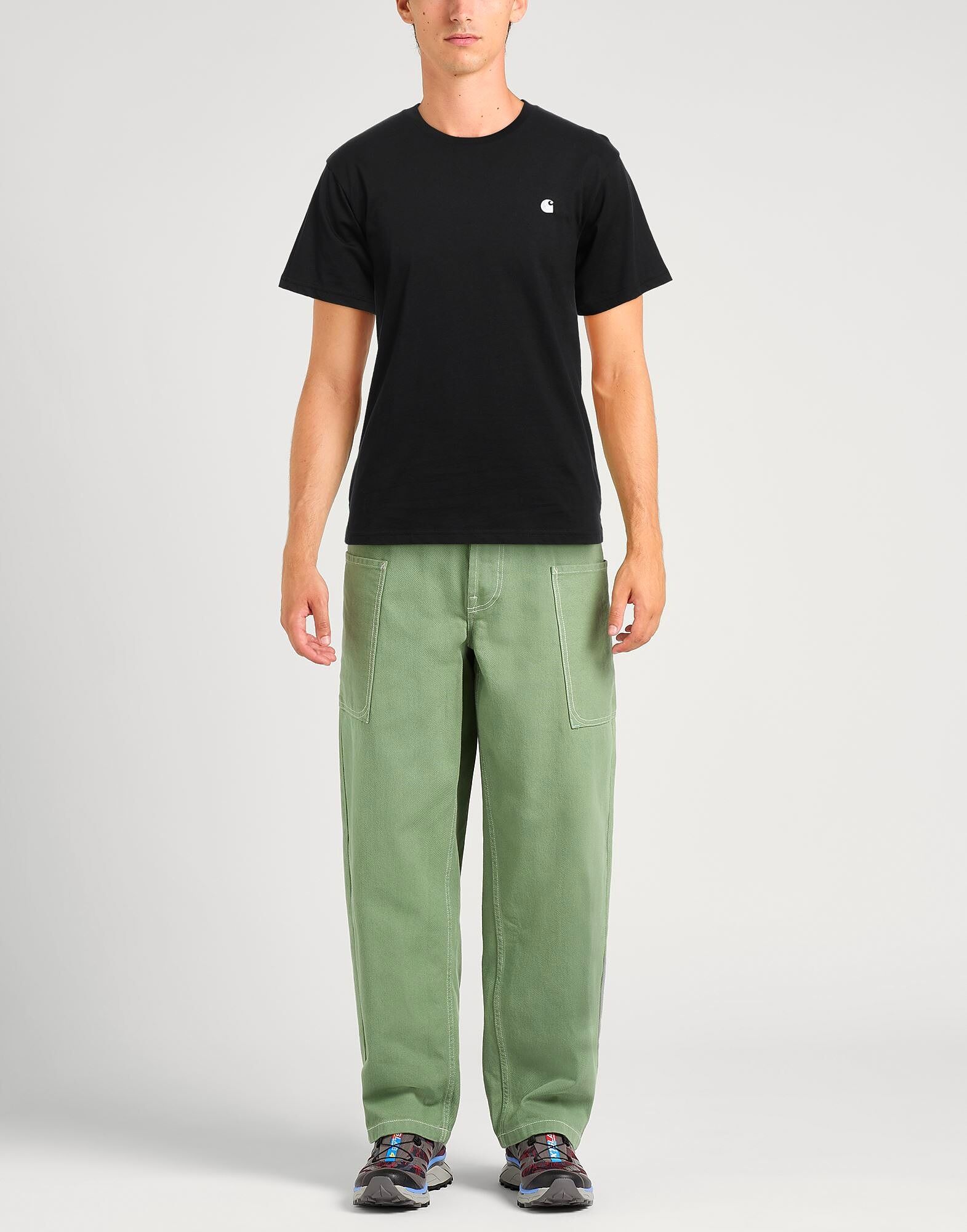 Базовая футболка, трикотажная, однотонная, с вышитым логотипом, круглый вырез, короткие рукава, боковой разрез по низу, машинная стирка, не отбеливать, не сушить в сушильной машине