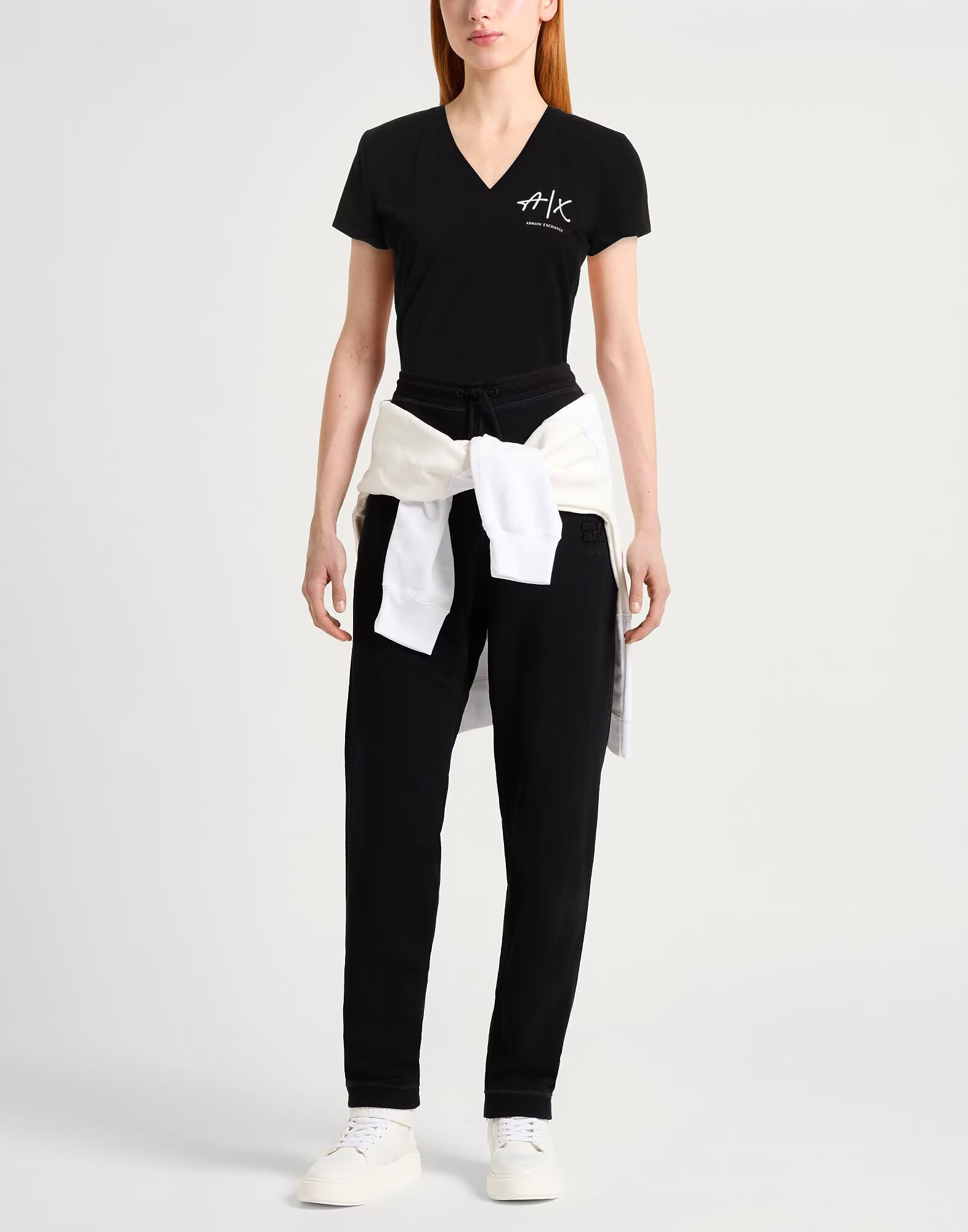 Футболка с логотипом, трикотажная, однотонная с принтом, без аппликаций, V-образный вырез, короткие рукава, эластичная, машинная стирка, не отбеливать, не сушить в сушильной машине