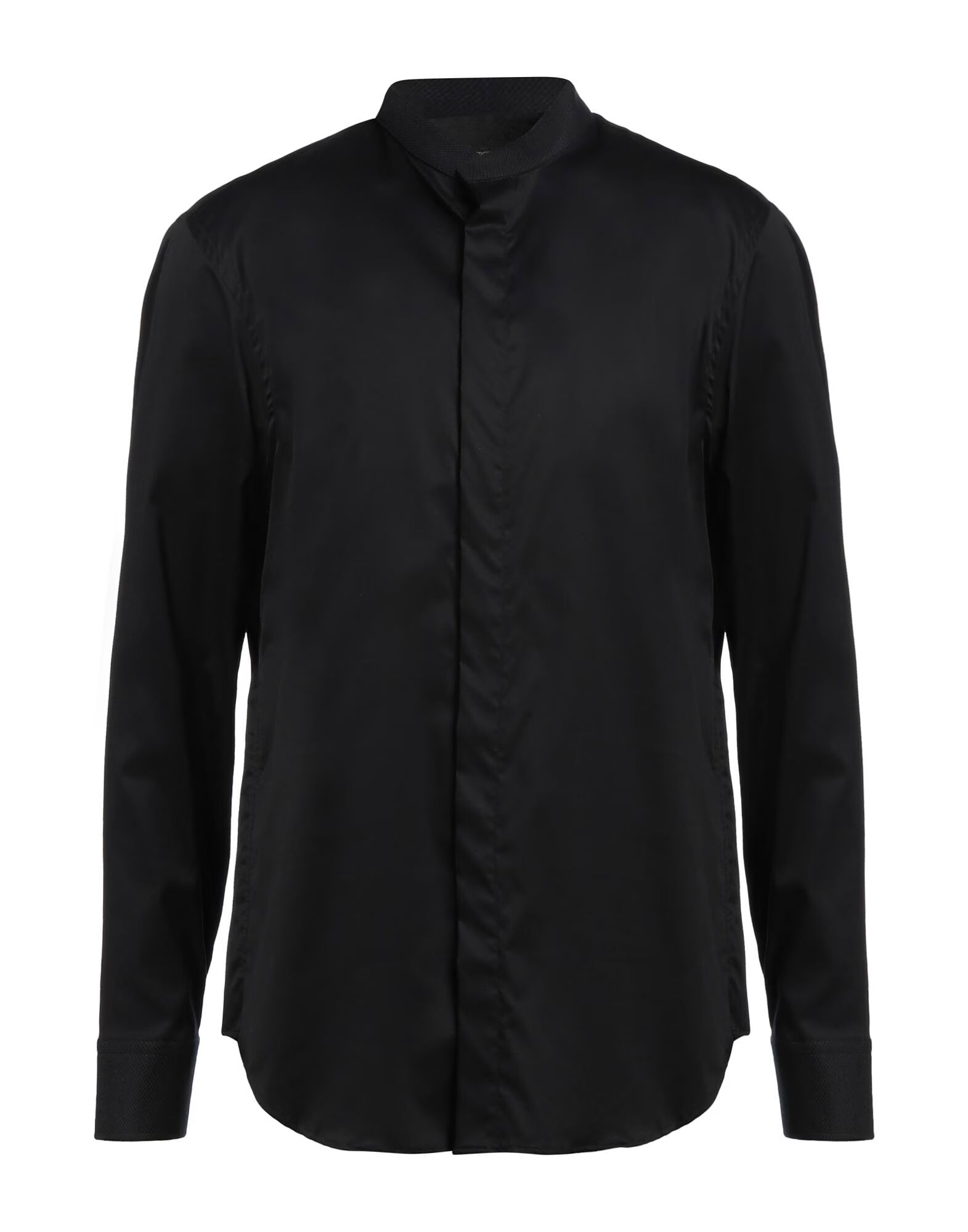 Рубашка стандартного кроя, твил, однотонная, без аппликаций, воротник-стойка, длинные рукава, потайная застежка на пуговицы, эластичная ткань, химчистка, не отбеливать, не сушить в сушильной машине