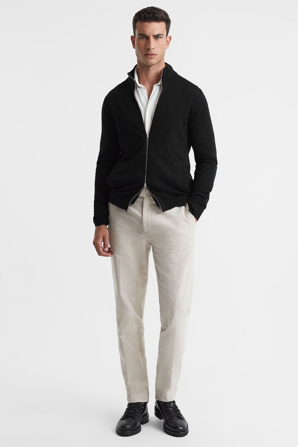 Свитер из шерсти мериноса Хэмпшир на молнии Reiss, черный 28 421₽