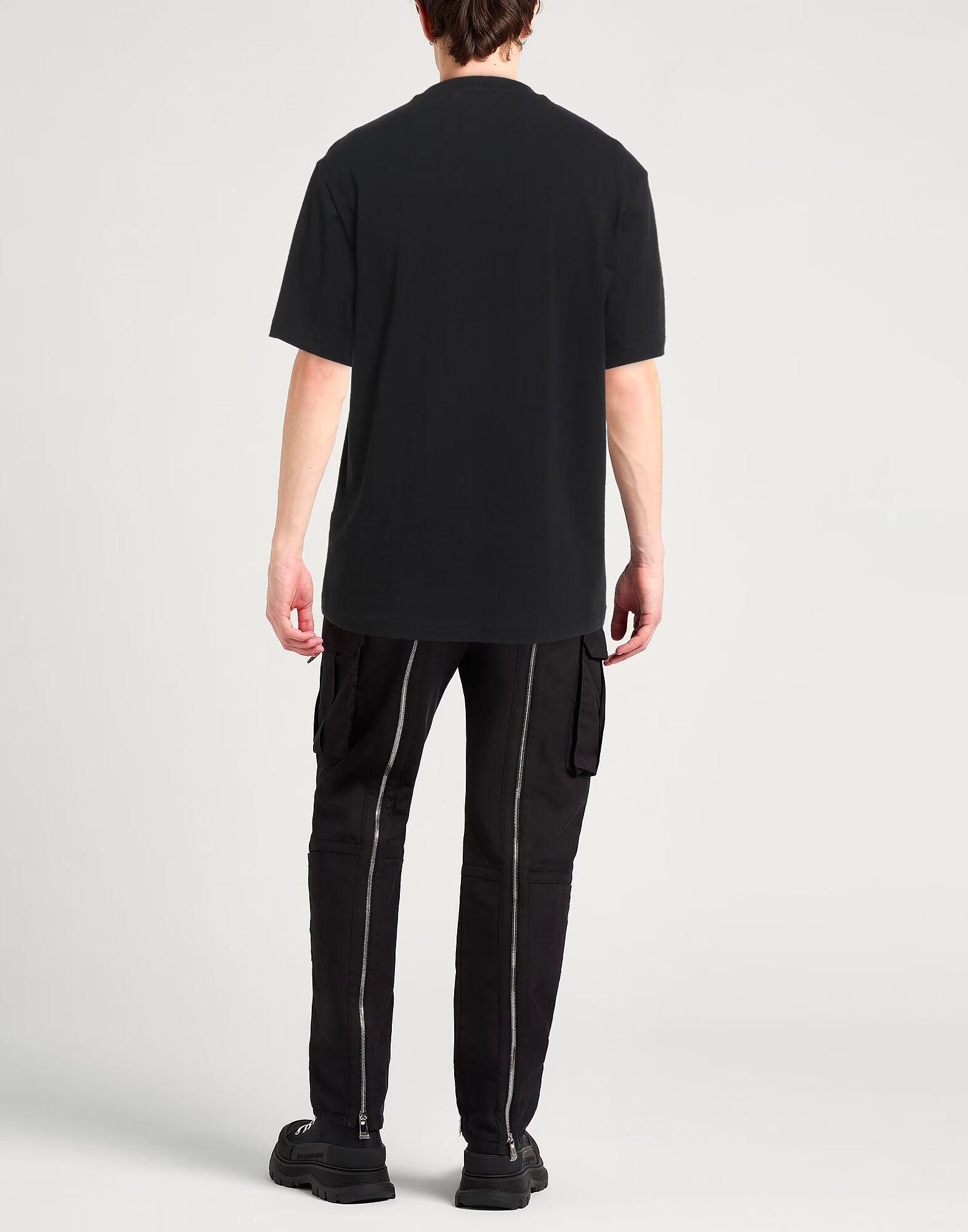 Футболка с логотипом, однотонная с принтом, без аппликаций, круглый вырез, короткие рукава, ручная стирка, не отбеливать, не сушить в сушилке, размеры этой марки большемерят