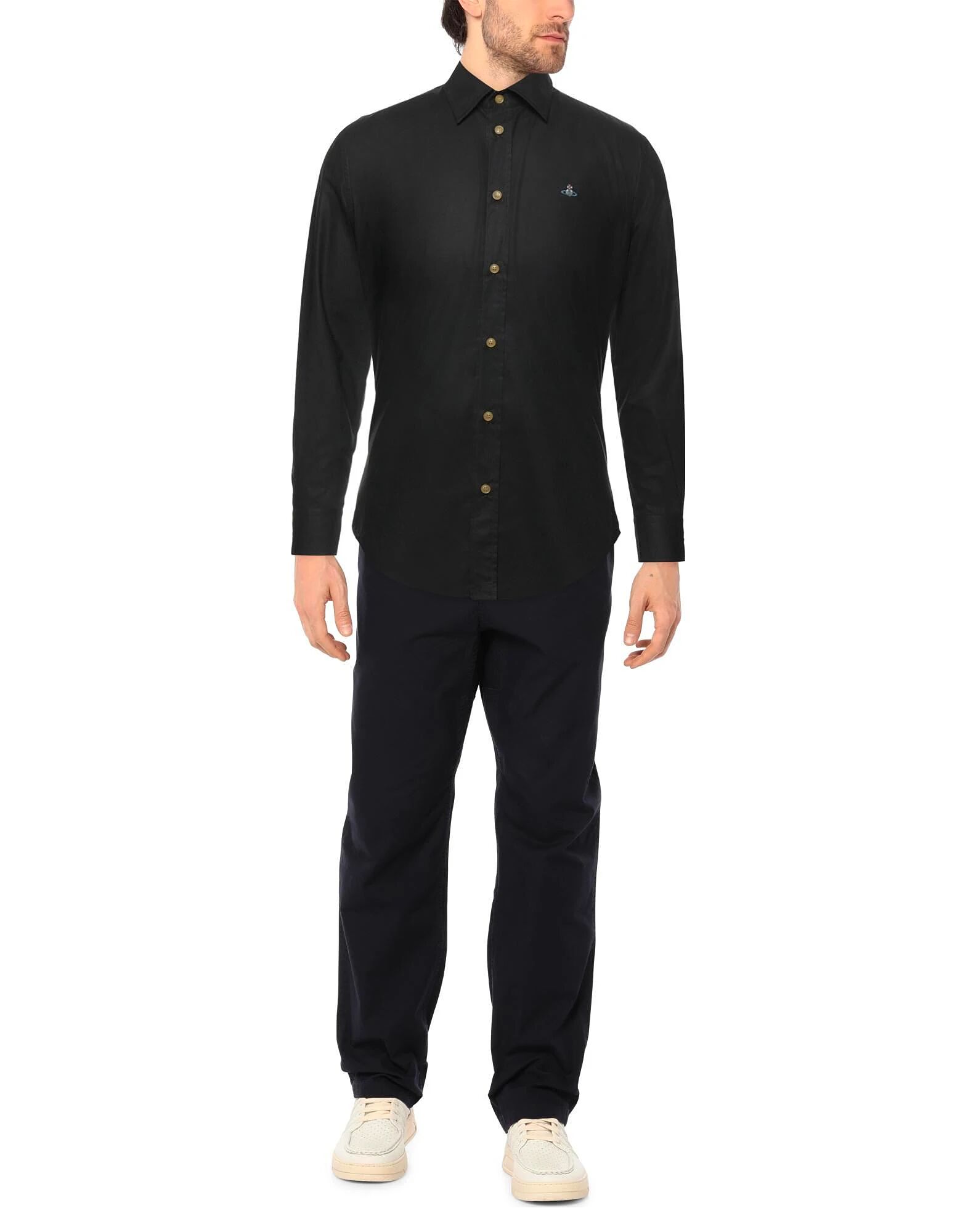 Рубашка стандартного кроя, тканая, однотонная, вышитый логотип, классический воротник, длинные рукава, манжеты на пуговицах, застежка на пуговицы, содержит нетекстильные части животного происхождения, химчистка, не отбеливать, не сушить в сушильной машине, этот бренд маломерит