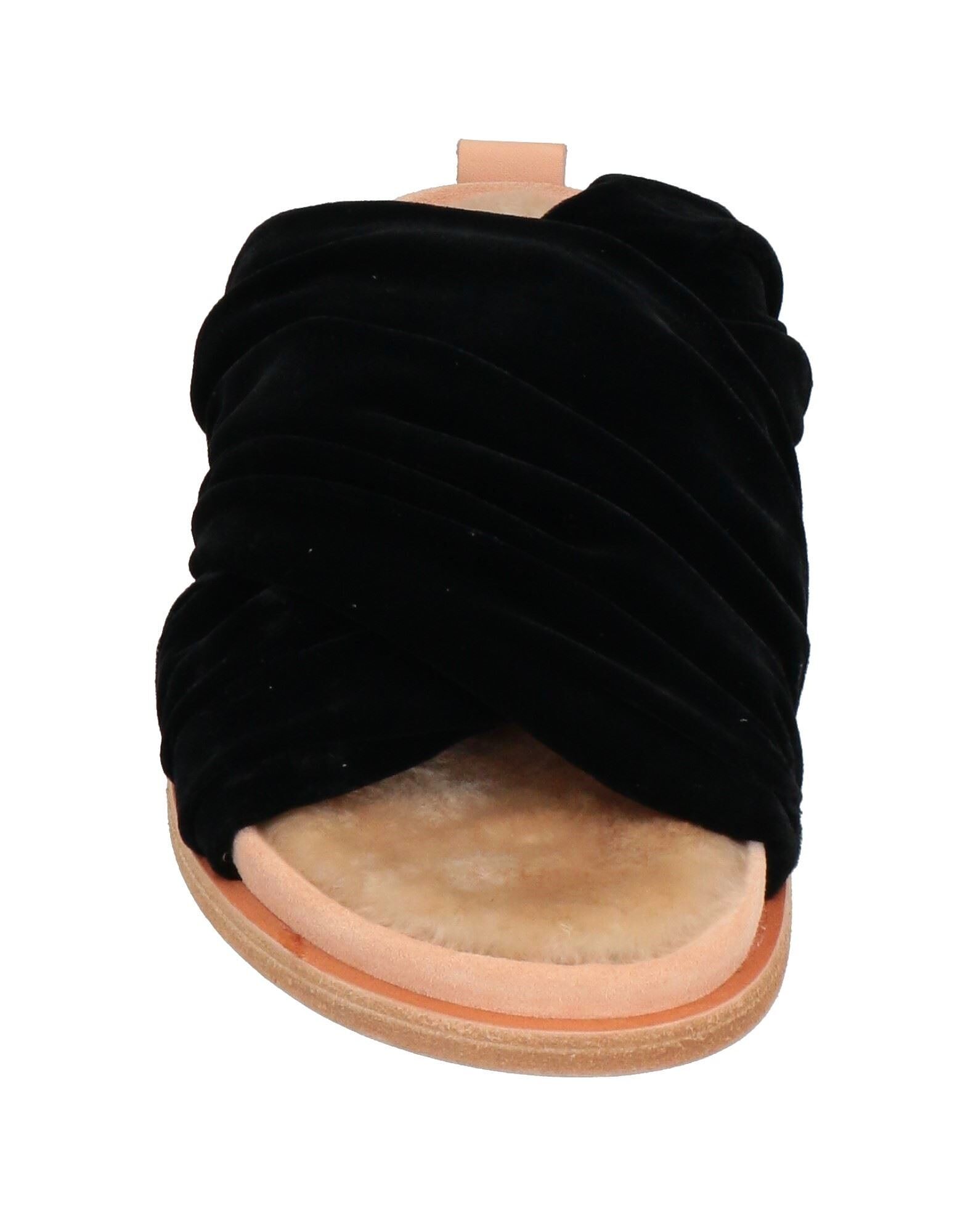 Бархат, без аппликаций, однотонный, подкладка из козьей шерсти, закругленный носок, плоская подошва, кожаная подошва, содержит нетекстильные части животного происхождения, сандалии
