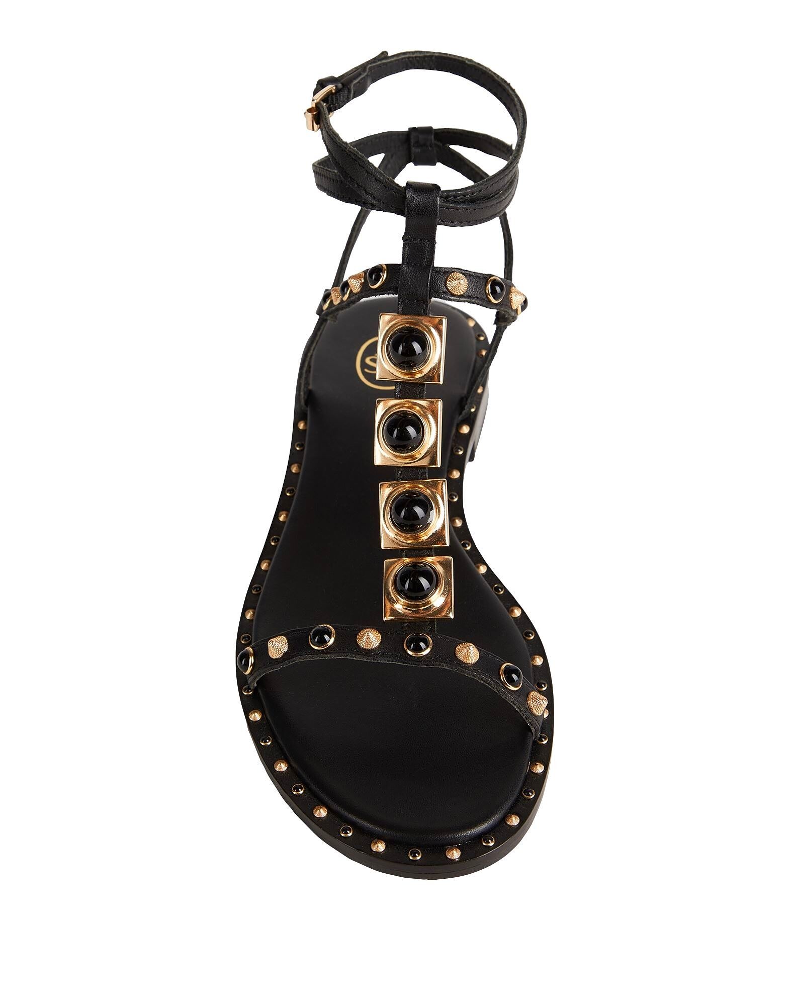 Сандалии с ремешком на щиколотке, кожаные, однотонные с аппликациями, декорированные, кожаная подкладка, застежка на пряжку, круглый носок, плоская подошва, кожаная подошва, содержат нетекстильные части животного происхождения