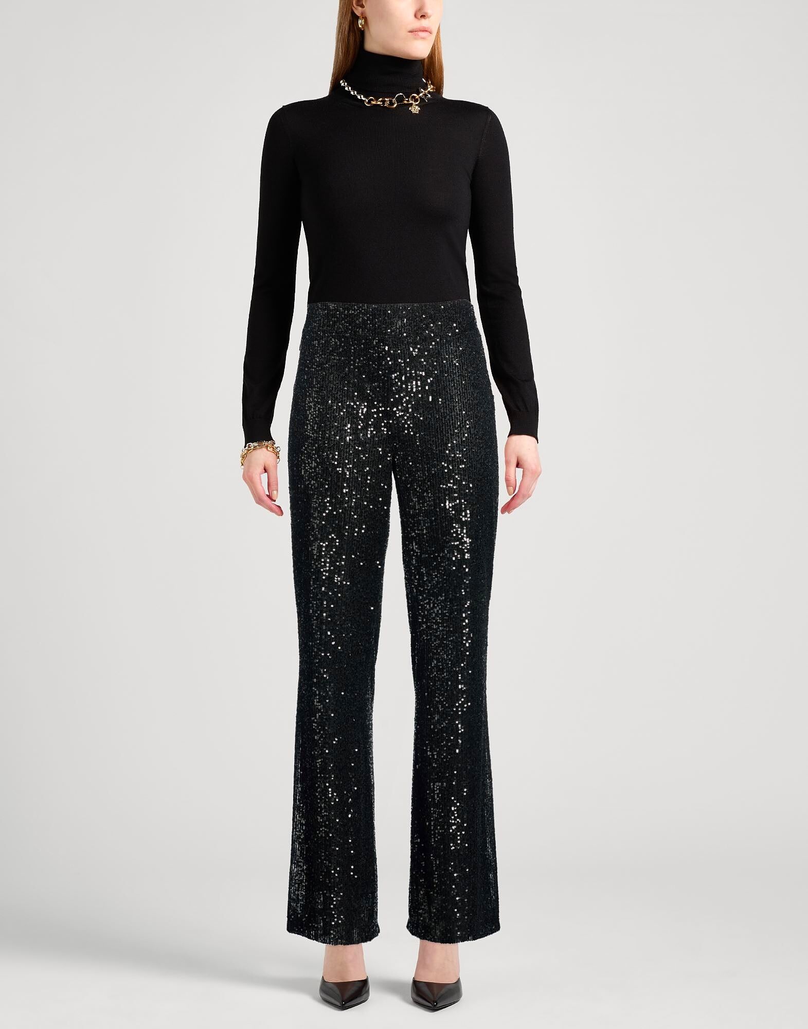 Тюль, пайетки, однотонный цвет, высокая талия, стандартный крой, застежка-молния, без карманов, ручная стирка или химчистка, не сушить в сушильной машине, брюки-клеш