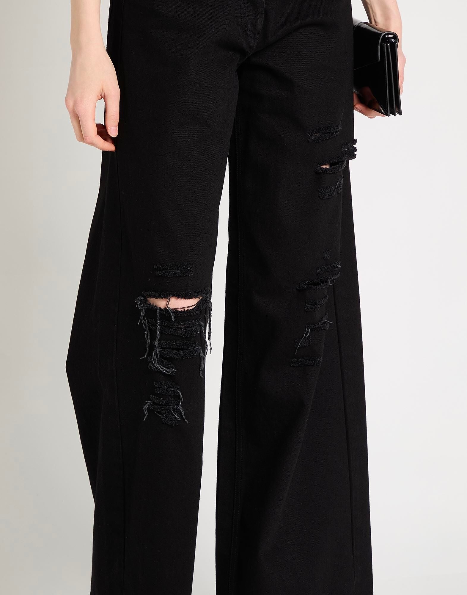 Джинсы с широкими штанинами, деним, однотонные, с вырезами, цветная стирка, высокая талия, стандартный крой, 1 пуговица, застежка на молнию, несколько карманов, ручная стирка, не отбеливать, не сушить в сушилке, этот бренд большемерит
