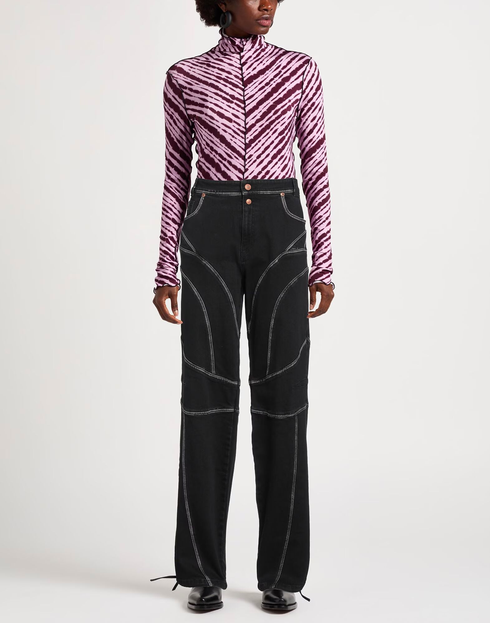Джинсы с широкими штанинами, деним, двухцветные, с логотипом бренда, цветная стирка, высокая талия, стандартный крой, застежка на молнию, застежка на пуговицы, шнурок по низу, множество карманов, машинная стирка или химчистка, не отбеливать, не сушить в сушильной машине, этот бренд маломерит