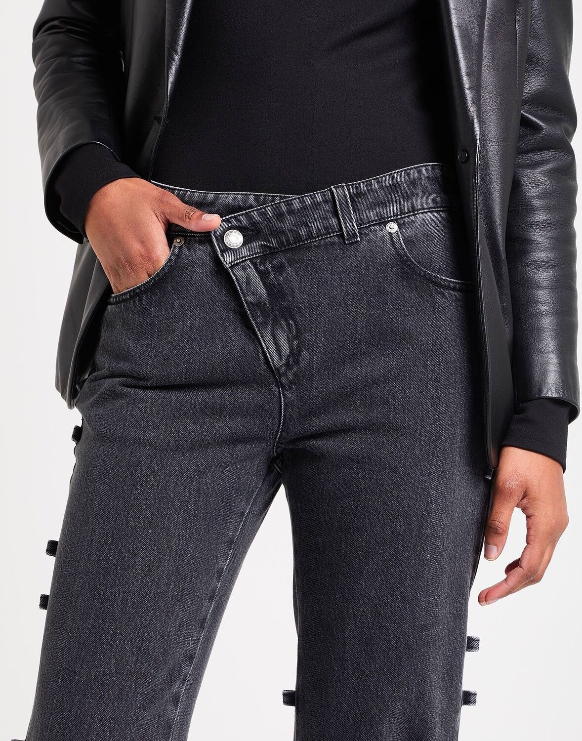 Джинсы-клеш, деним, выцветшие, однотонные, с логотипом бренда, цветная стирка, высокая талия, стандартный крой, застежка на молнию, застежка на пуговицы, множество карманов, химчистка, не отбеливать, не сушить в сушильной машине, содержит нетекстильные части животного происхождения