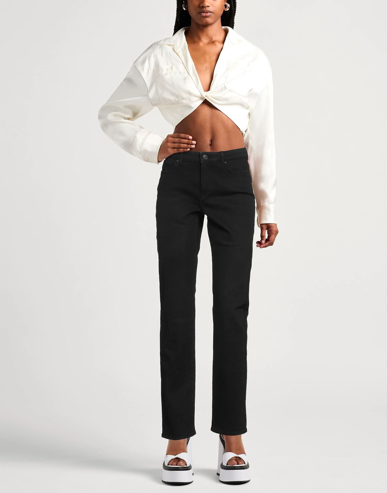 Джинсы прямого кроя, деним, эластичная ткань, однотонные, логотип бренда, цветная стирка, средняя посадка, петли для ремня, зауженный крой, 1 пуговица, застежка на молнию, несколько карманов, машинная стирка, не отбеливать, не сушить в сушильной машине