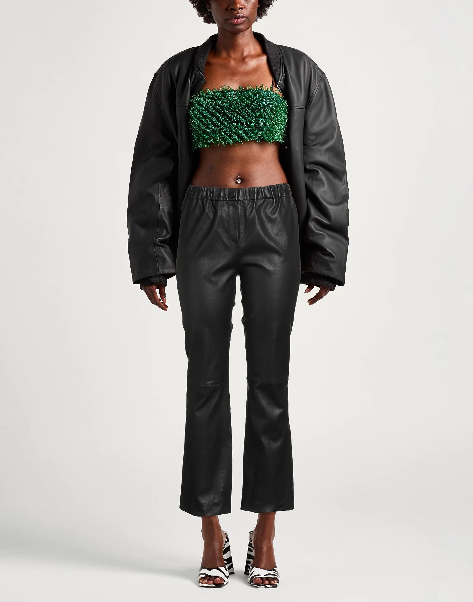 Брюки-клеш, кожа, однотонные, без аппликаций, высокая талия, стандартный крой, застежка-молния, декоративные карманы, не стирать, не отбеливать, не сушить в сушильной машине, не гладить, содержат нетекстильные части животного происхождения