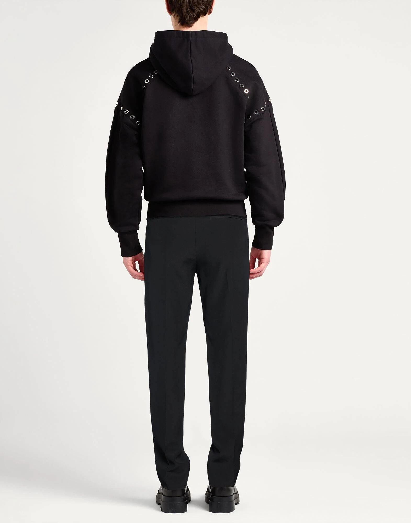 Классические брюки, прохладная шерсть, однотонные, без аппликаций, высокая талия, шлевки для ремня, зауженные штанины, облегающий крой, застежка на молнию, застежки на кнопки, необработанный край, прорезные карманы, карманы на молнии, химчистка, не отбеливать, не сушить в сушильной машине Создайте свой идеальный образ с этим дизайнерским нарядом, подходящим для деловых встреч или особых случаев Этот бренд большемерит