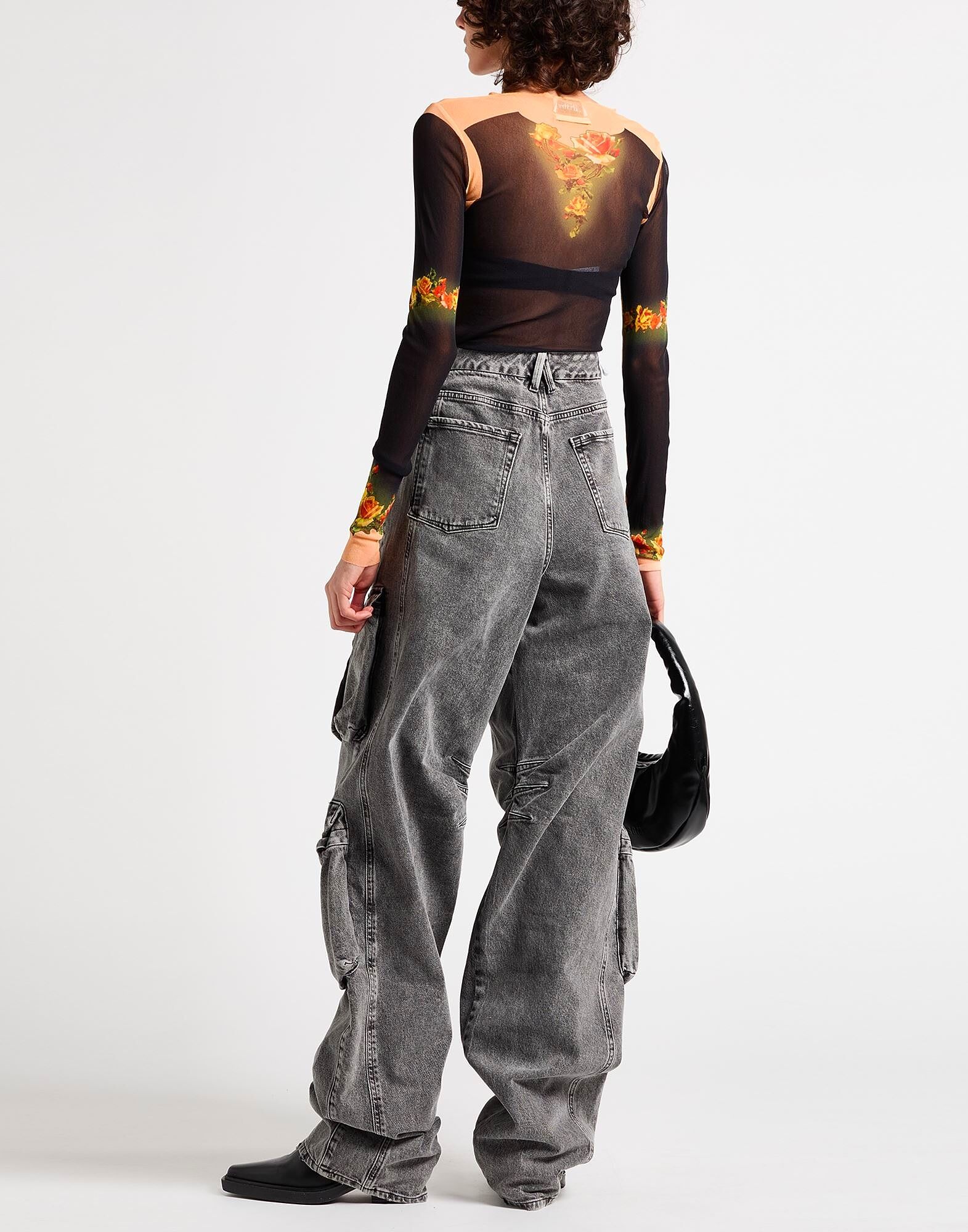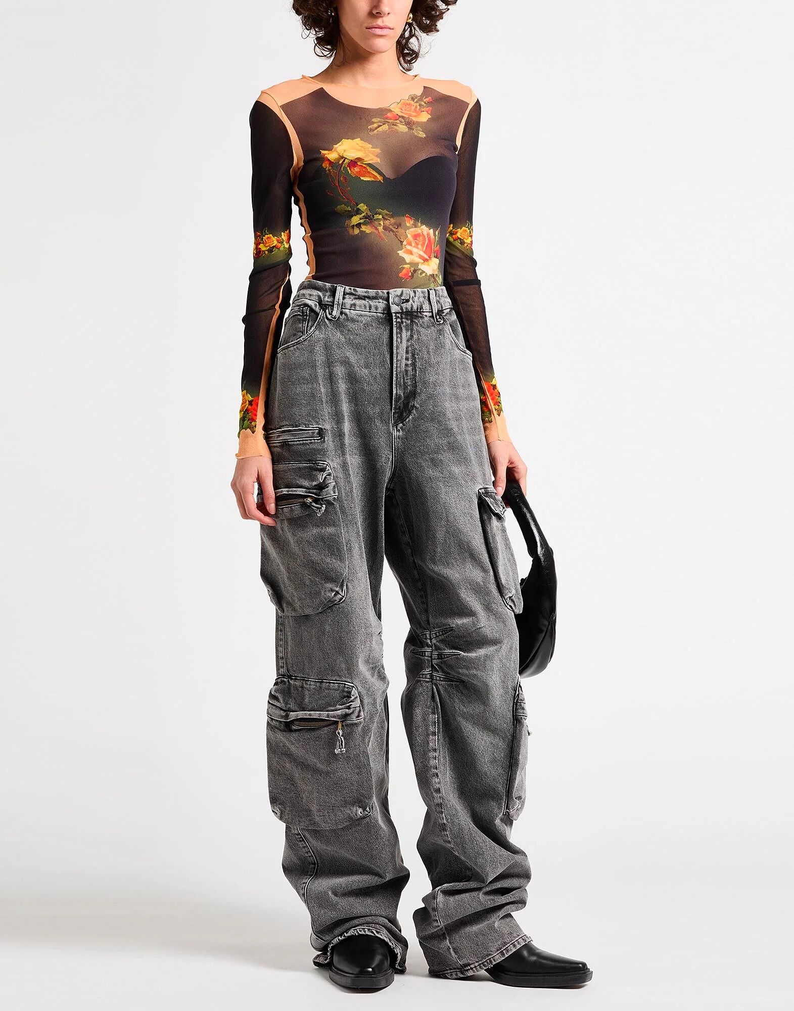 Джинсы-карго, деним, однотонные, без аппликаций, цветная стирка, высокая талия, петли для ремня, стандартный крой, застежка на молнию, карманы, машинная стирка, не отбеливать, сушка в сушильной машине