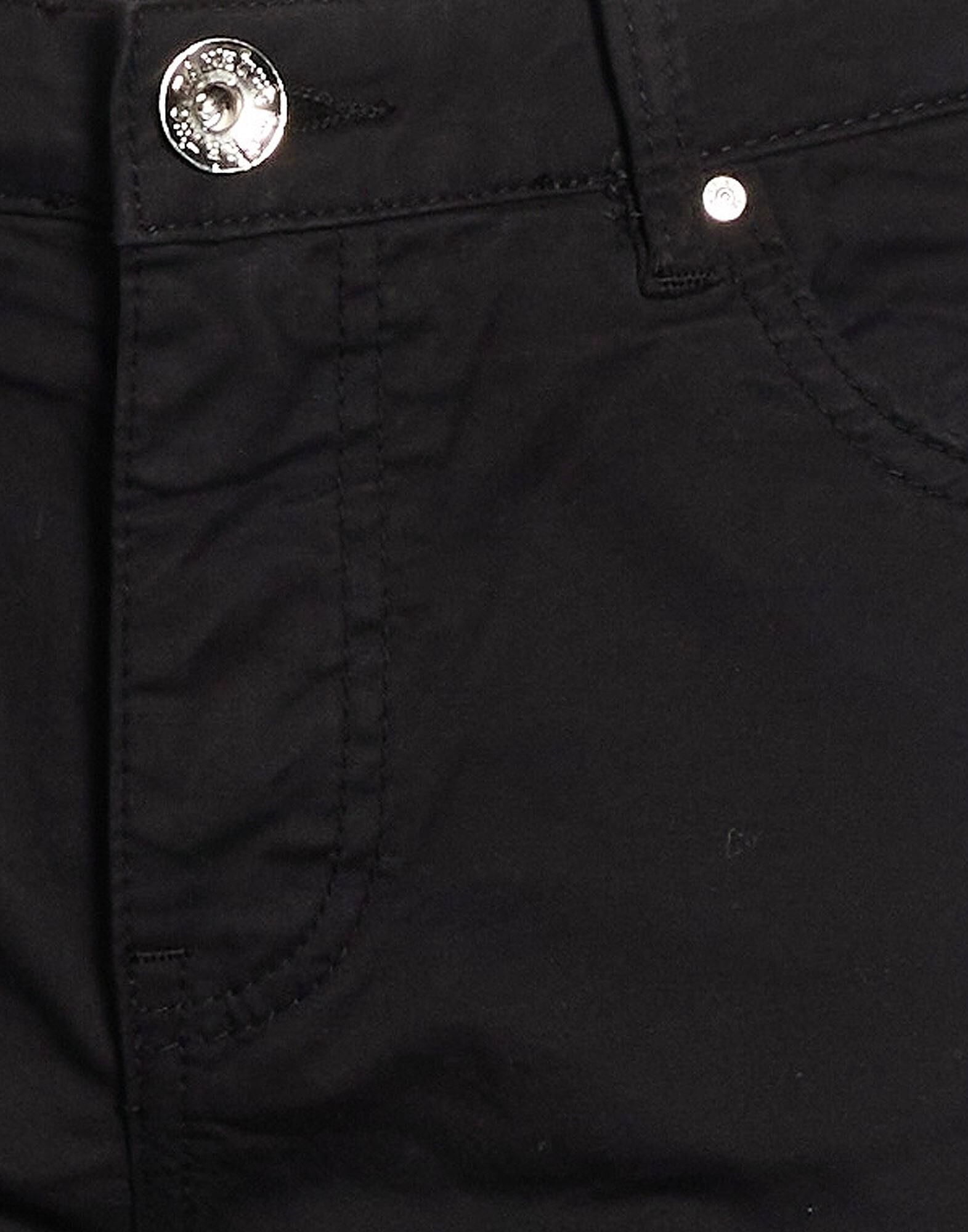 Узкие брюки, твил, эластичная ткань, однотонные, логотип бренда, средняя посадка, петли для ремня, стандартный крой, застежка на молнию, застежка на пуговицы, пять карманов, машинная стирка, не отбеливать, не сушить в сушилке, укороченные