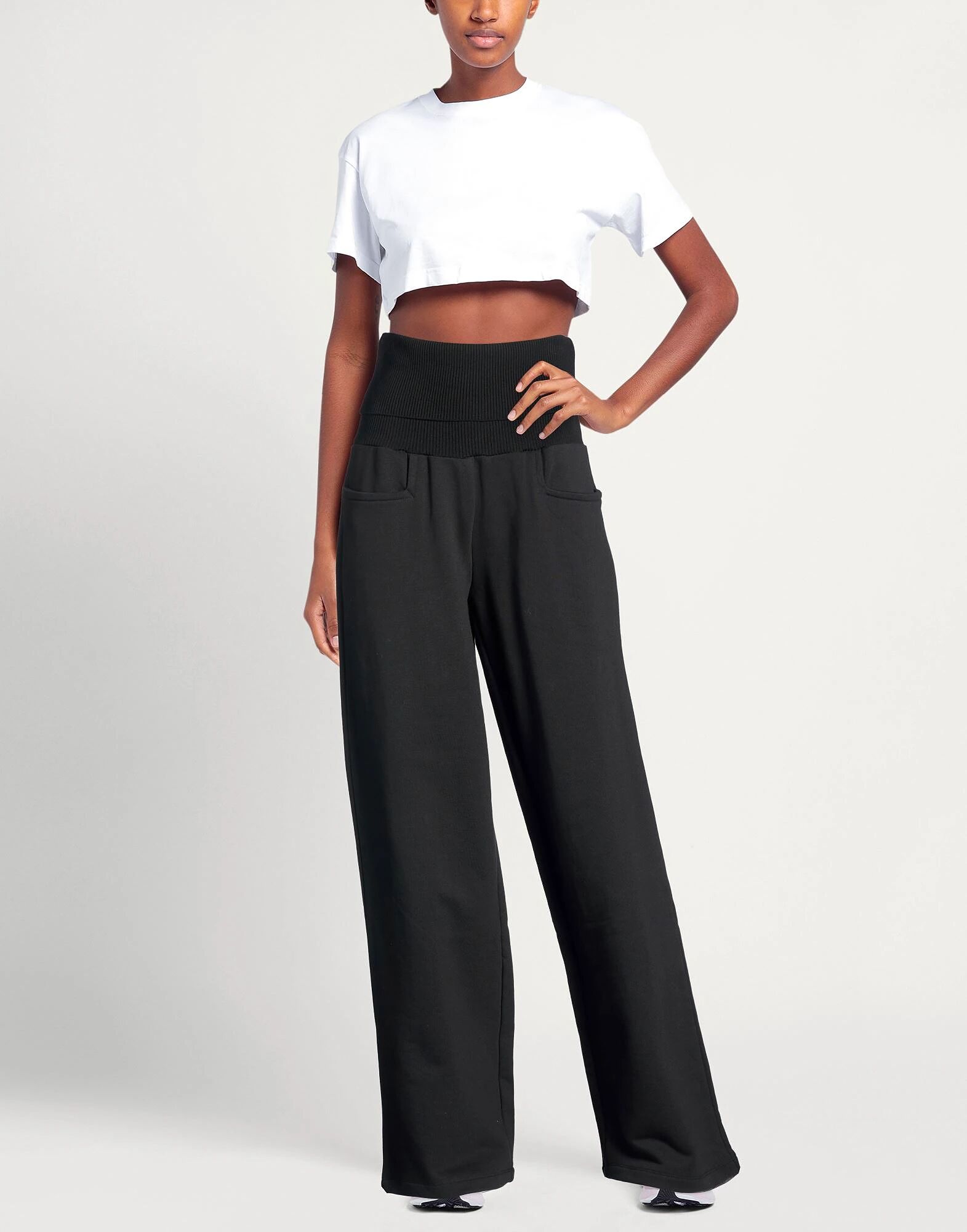 Спортивные брюки, французский трикотаж, однотонные, трикотажная отделка, высокая талия, эластичный пояс, свободный крой, карманы, машинная стирка, не отбеливать, не сушить в сушильной машине
