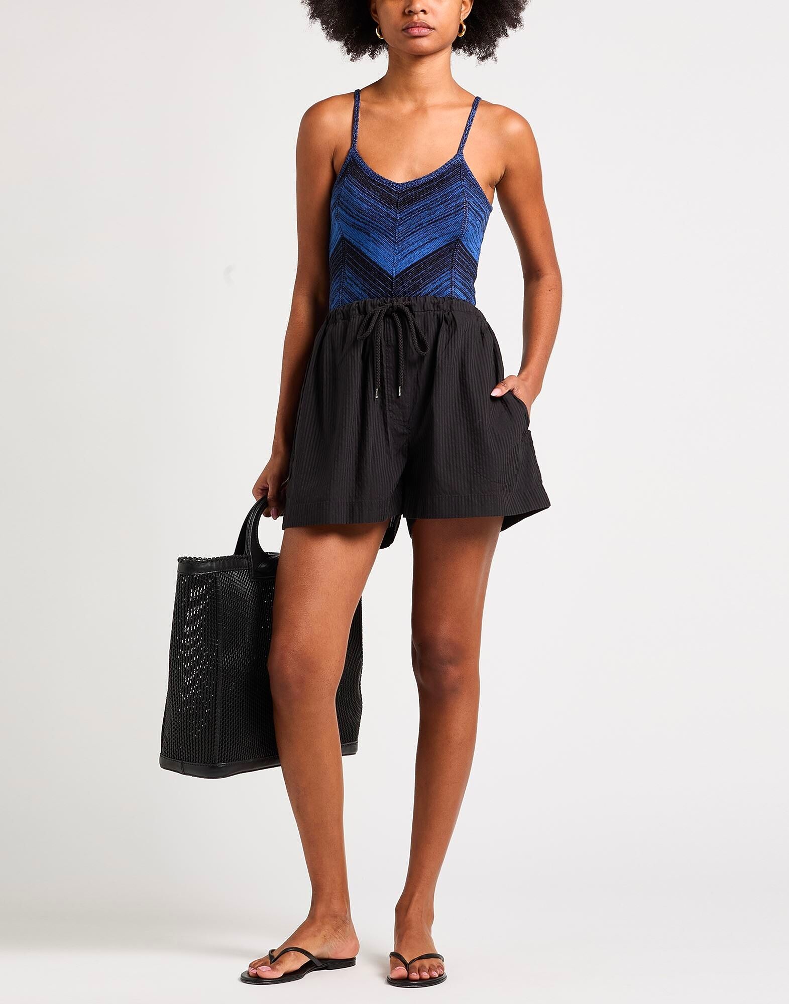 Шорты, тканые, в полоску, без аппликаций, с высокой талией, свободного кроя, застежка на шнурке, прорезные карманы, не стирать, не отбеливать, не сушить в сушилке, не гладить