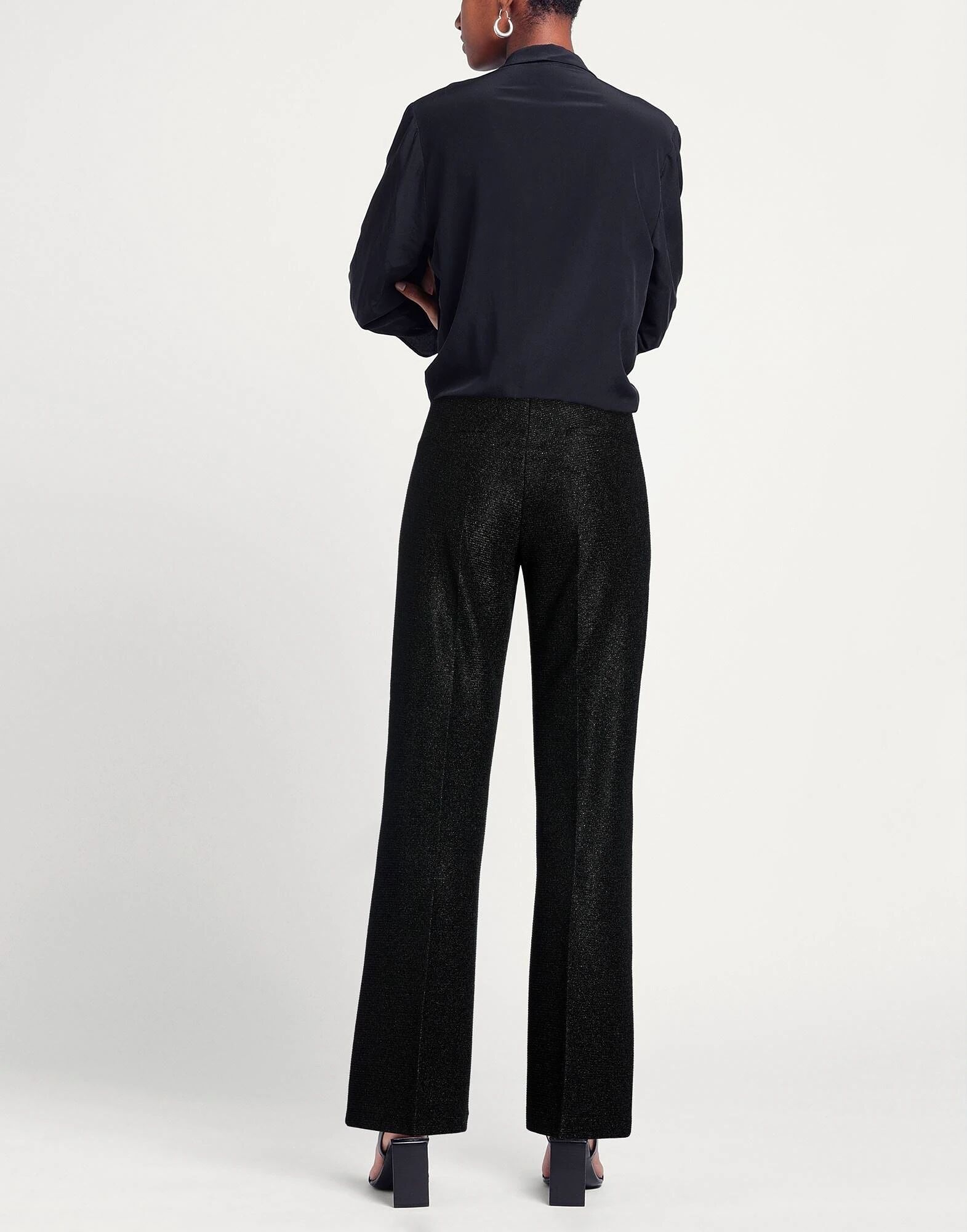 Расклешенные брюки, трикотаж, эластичная ткань, однотонные, с блестками, высокая талия, петли для ремня, стандартный крой, застежка на крючки, застежка на молнию, прорезные карманы, карманы на молнии, ручная стирка, не отбеливать, не сушить в сушильной машине